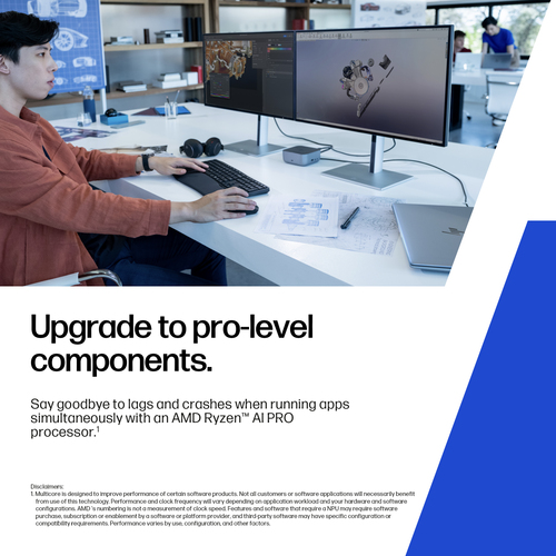 Verpackungsdaten | | Verpackungsbreite | 441 mm | | Verpackungstiefe | 274 mm | | Verpackungshöhe | 63 mm | Tastatur | | Numerisches Keypad | Nein | | Eingabegerät | Clickpad | | Tastatur mit Hintergrundbeleuchtung | Ja | | Spritzwassergeschützte Tastatur | Ja | | Eingabegerätetyp | HP Premium Tastatur | Speichermedium | | Gesamtspeicherkapazität | 2 TB | | Speichermedien | SSD | | Optisches Laufwerk - Typ | Nein | | Gesamtkapazität der SSDs | 2 TB | | Anzahl SSD installiert | 1 | | SSD Speicherkapazität | 2 TB | | SSD-Speichertyp | TLC | | SSD Schnittstelle | PCI Express 4.0 | | NVMe | Ja | | SSD-Formfaktor | M.2 | Speicher | | Speicherkapazität | 64 GB | | RAM-Speicher maximal | 64 GB | | Interner Speichertyp | DDR5-SDRAM | | Speichertaktfrequenz | 5600 MHz | | Memory Formfaktor | SO-DIMM | | Speicherlayout | 2 x 32 GB | | Speicherkartensteckplätze | 2x SO-DIMM | | Speicherkanäle | Zweikanalig | Sonstige Funktionen | | Herstellergarantie | Die 1-jährige beschränkte Garantie (1/1/0) umfasst 1 Jahr Garantie auf Teile und Arbeit. Keine Vor-Ort-Reparatur. Die Geschäftsbedingungen variieren je nach Land. Es gelten bestimmte Einschränkungen und Ausschlussklauseln. | | UNSPSC-Code | 43211503 | Software | | Installiertes Betriebssystem | Windows 11 Pro | Sicherheit | | Kabelsperre-Slot | Ja | | Fingerabdruckscanner | Ja | | Passwortschutz | Ja | | Passwortschutz-Art | BIOS, Einschalten | Prozessor(en) | | Prozessorfamilie | AMD Ryzen AI 7 PRO | | Prozessorhersteller | AMD | | Prozessor(en) | 350 | | Prozessor-Taktfrequenz | 2 GHz | | Prozessorgeneration | AMD Ryzen AI PRO 300 Series | | Anzahl Prozessorkerne | 8 | | Prozessor-Threads | 16 | | Prozessor Boost-Frequenz | 5 GHz | | Prozessor-Cache | 16 MB | | Prozessor Cache Typ | L3 | Neuronale Prozessoreinheit (NPU) | | Copilot+ PC | Ja | | Neuronale Prozessoreinheit (NPU) | AMD Ryzen AI | | NPU-Leistung bis zu | 50 Tera-Vorgänge pro Sekunde | Netzwerk | | Mobile Netzwerkverbindung | Nein | | Top WLAN-Standard | Wi-Fi 7 (802.11be) | | W-LAN | Ja | | WLAN-Standards | Wi-Fi 7 (802.11be) | | Antennentyp | 2x2 | | WLAN-Controllermodell | Qualcomm FastConnect 7800 | | Hersteller von WLAN-Controllern | Qualcomm | | Ethernet/LAN | Ja | | Ethernet LAN Datentransferraten | 10,100,1000 Mbit/s | | Bluetooth | Ja | | Bluetooth-Version | 5.4 | | Verkabelungstechnologie | 10/100/1000Base-T(X) | Nachhaltigkeit | | Nachhaltigkeitszertifikate | ENERGY STAR, TCO | | Nachhaltige Technologien und Materialien | Halogenarm; Großverpackungen verfügbar; Externes Netzteil mit einem Wirkungsgrad von 90 %; Das geformte Papierzellstoffpolster im Inneren der Verpackung stammt zu 100 % aus nachhaltigen Quellen und ist recycelbar; Umverpackung sowie Polster aus Wellpappe stammen zu 100 % aus nachhaltigen Quellen und sind recycelbar; 60 % recycelter Haushaltskunststoff | | Nachhaltigkeitskonformität | Ja | Markeneigenschaften | | HP-Lautsprecher | HP Dual Speakers | | HP Verbindungsoptimierer | Ja | | HP Support-Assistent | Ja | | HP Frontkamera | HP Webcam 5MP | | HP Künstliche Intelligenz | AI Workstation, AI PC | | HP-Segment | Business | | HP GTIN (EAN/UPC) | 199251478192 | Logistikdaten | | Warentarifnummer (HS) | 84713000000 | Lieferumfang | | Tastatur enthalten | Ja | Leistungen | | Motherboard Chipsatz | AMD SoC | Kamera | | Front Kamera | Ja | | Auflösung Frontkamera (numerisch) | 5 MP | | Infrarot (IR)-Kamera | Ja | Grafik | | Eingebaute Grafikadapter | Ja | | Separater Grafikadapter | Nein | | Separates Grafikkartenmodell | Nicht verfügbar | | Eingebautes Grafikkartenmodell | AMD Radeon 860M | | Hersteller der eingebauten GPU | AMD | | On-Board-Grafikadapterfamilie | AMD Radeon Graphics | Gewicht und Abmessungen | | Gewicht | 1,44 kg | | Breite | 315,6 mm | | Tiefe | 222 mm | | Höhe | 18,9 mm | Energie | | USB Typ-C Ladeport | Ja | | Netzteilstärke | 140 W | | Netzteilfrequenz | 50 - 60 Hz | | Netzteil Eingansgsspannung | 100 - 240 V | | USB Power Delivery | Ja | Design | | Produkttyp | Mobiler Arbeitsplatz | | Produktfarbe | Silber | | Formfaktor | Klappgehäuse | | Name der Farbe | Meteorsilber | | Marktpositionierung | Leistung | | Jahr der Einführung | 2025 | | Ursprungsland | China, Mexiko | | Ursprünglicher Markenname | HP | CO2-Fußabdruck | | Gesamter Kohlendioxid-Fußabdruck (kg of CO2e) | 210 | | Kohlenstoffemissionen, Herstellung (kg an CO2e) | 171 | | Kohlenstoffemissionen, Logistik (kg an CO2e) | 20 | | Kohlenstoffemissionen gesamt, mit/ohne Nutzungsphase(kg an CO2e) | 19 | Bildschirm | | Bildschirmdiagonale | 35,6 cm | | Display-Auflösung | 2560 x 1600 Pixel | | Touchscreen | Nein | | HD-Typ | WQXGA | | Panel-Typ | IPS | | Blendfreier Bildschirm | Ja | | Helligkeit | 500 cd/m² | | Bildschirmdiagonale in cm | 35,6 cm | | RGB-Farbraum | DCI-P3 | | Farbskala | 100 % | | Maximale Bildwiederholrate | 120 Hz | | Farbpalette DCI-P3 | 100 % | Audio | | Eingebaute Lautsprecher | Ja | | Anzahl eingebauter Lautsprecher | 2 | | Eingebautes Mikrofon | Ja | | Mikrofonanzahl | 2 | Anschlüsse und Schnittstellen | | USB 3.2 Gen 1 (3.1 Gen 1) Anzahl der Anschlüsse vom Typ A | 1 | | Anzahl HDMI-Anschlüsse | 1 | | USB 3.2 Gen 2 (3.1 Gen 2) Anzahl der Anschlüsse vom Typ C | 1 | | Anzahl USB4 Gen 3×2-Ports | 2 | | HDMI-Version | 2.1 | | Anzahl Thunderbolt 4-Ports | 2 | | Intel® Thunderbolt 4 | Ja | | Mikrofon-Eingang | Ja | | Kombinierter Kopfhörer-/Mikrofon-Anschluss | Ja | | USB-Typ-C DisplayPort-Wechselmodus | Ja | Akku/Batterie | | Batteriekapazität | 62 Wh | | Akku-/Batterietechnologie | Lithium Polymer (LiPo) | | Anzahl Batteriezellen | 3 | | Schnellladung | Ja | | Schnellladezeit (50%) | 30 min |