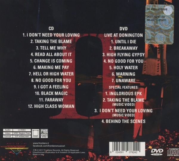 Disc 02 01. "Until I die" 02. "Breakaway" 03. "High flying gypsy" 04. "No good for you" 05. "Holy water" 06. "Warning" 07. "Unaware" 08. "EPK (Interviews)" 09. "Taking the blame (Music Video)" 10. "I don't need your loving"