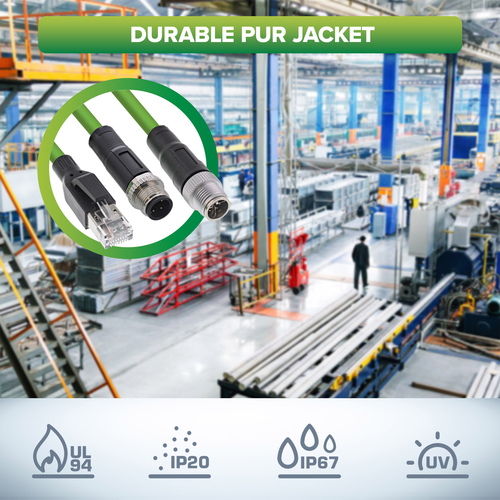 ® Industrie Netzwerkkabel, M12 4-pin D-kodiert Stecker/Stecker, PUR, 20m (40320)