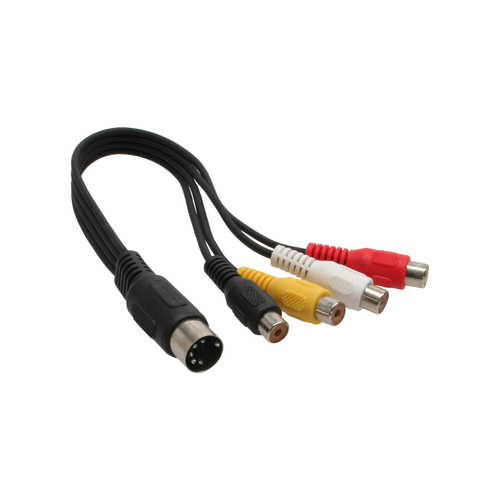 Details: Allgemein Kabeltyp Video- / Audiokabel Unterstützte Schnittstellen Composite Video / Audio Länge 20 cm Farbe Schwarz Konnektivität Anschluss DIN 5-polig - männlich Stecker (zweites Ende) RCA x 4 - weiblich