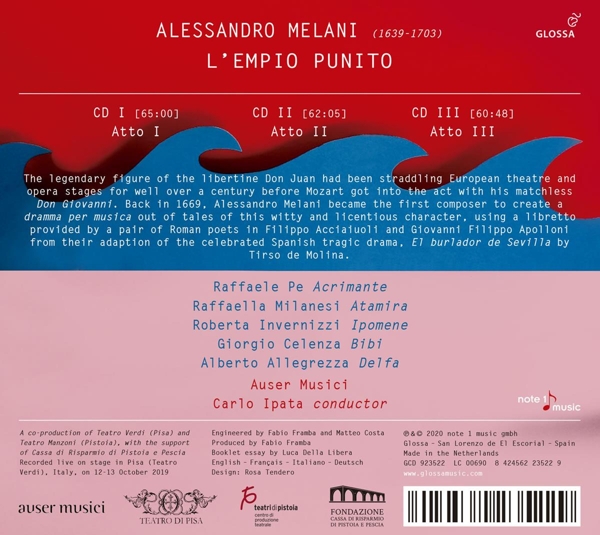 Beschreibung: | The legendary figure of the libertine Don Juan had been straddling European theatre and opera stages for well over a century before Mozart got into the act with his matchless Don Giovanni. Back in 1669, Alessandro Melani became the first composer to create a dramma per musica out of tales of this witty and licentious character, using a libretto provided by a pair of Roman poets in Filippo Acciaiuoli and Giovanni Filippo Apolloni from their adaption of the celebrated Spanish tragic drama, El burlador de Sevilla by Tirso de Molina. Acciauoli and Apolloni transposed the events of Seville into a mythical landscape and called Don Giovanni Acrimante and his servant Leporello Bibi. But they did not change the original plot. This world premiere recording of Melani's L'empio-punito was captured live during the representations that took place at the Teatro Verdi in Pisa, with an outstanding vocal cast that includes Raffaele Pe in the main role (Acrimante), Raffaelle Milanesi (Atamira), Roberta Invernizzi (Ipomene), Giorgio Celenza (Bibi) and Alberto Allegrezza (Delfa). The instrumental support is provided by the fine orchestra Auser Musici conducted by a Carlo Ipata., Runningtime: 00:00:00, Labelcode GSA923522.2 |