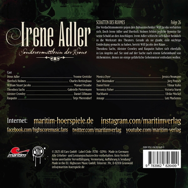 Irene Adler 26 - Schatten Des Ruhmes