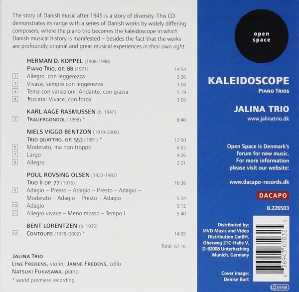 Trio für Klavier, Violine und Violoncello op. 88 (1971) 01. "1. Allegro, con leggerezza" 02. "2. Vivace, sempre con leggerezza" 03. "3. Tema con variazioni: Andante, con grazia" 04. "4. Toccata: Vivace, con forza" 05. "Trauergondol (1998)" Trio für Klavier, Violine und Violoncello Nr. 4 op. 553 (1991) 06. "1. Moderato, ma non troppo" 07. "2. Largo" 08. "3. Allegro" Trio für Klavier, Violine und Violoncello Nr. 2 op. 77 (1976) 09. "1. Adagio - Presto - Adagio - Presto - Adagio - Moderato - Adagio - Presto - Adagio" 10. "2. Adagio" 11. "3. Allegro vivace - Meno mosso - Tempo 1" 12. "Contours (1978/2002)"