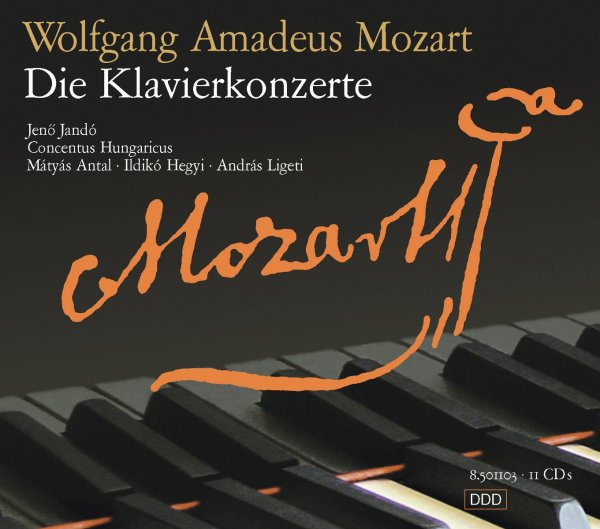 Konzert für Klavier und Orchester Nr. 20 d-moll KV 466 (Kadenz: Beethoven) 01. Jand¢, Jen? "1. Allegro" 02. Jand¢, Jen? "2. Romance" 03. Jand¢, Jen? "3. Allegro assai" Konzert für Klavier und Orchester Nr. 13 C-Dur KV 415 04. Jand¢, Jen? "1. Allegro" 05. Jand¢, Jen? "2. Andante" 06. Jand¢, Jen? "3. Rondeau: Allegro" Konzert für Klavier und Orchester Nr. 21 C-Dur KV 467 (Kadenz: Robert Casadesus) 01. Jand¢, Jen? "1. Allegro maestoso" 02. Jand¢, Jen? "2. Andante" 03. Jand¢, Jen? "3. Allegro vivace assai" Konzert für Klavier und Orchester Nr. 12 A-Dur KV 414 (385p) 04. Jand¢, Jen? "1. Allegro" 05. Jand¢, Jen? "2. Andante" 06. Jand¢, Jen? "3. Allegro" Konzert für Klavier und Orchester Nr. 14 Es-Dur KV 449 07. Jand¢, Jen? "1. Allegro vivace" 08. Jand¢, Jen? "2. Andantino - Andante" 09. Jand¢, Jen? "3. Allegro ma non troppo" Konzert für Klavier und Orchester Nr. 9 Es-Dur KV 271 "Jeunehomme-Konzert" 01. Jand¢, Jen? "1. Allegro" 02. Jand¢, Jen? "2. Andantino" 03. Jand¢, Jen? "3. Rondeau: Presto" Konzert für Klavier und Orchester Nr. 27 B-Dur KV 595 04. Jand¢, Jen? "1. Allegro" 05. Jand¢, Jen? "2. Larghetto" 06. Jand¢, Jen? "3. Allegro" Konzert für Klavier und Orchester Nr. 23 A-Dur KV 488 (Kadenz: Mozart) 01. Jand¢, Jen? "1. Allegro" 02. Jand¢, Jen? "2. Adagio" 03. Jand¢, Jen? "3. Allegro assai" Konzert für Klavier und Orchester Nr. 24 c-moll KV 491 04. Jand¢, Jen? "1. Allegro (Kadenz: Hummel)" 05. Jand¢, Jen? "2. Larghetto" 06. Jand¢, Jen? "3. Allegretto (Kadenz: Mozart)" Konzert für Klavier und Orchester Nr. 17 G-Dur KV 453 (Kadenz: Mozart) 01. Jand¢, Jen? "1. Allegro" 02. Jand¢, Jen? "2. Andante" 03. Jand¢, Jen? "3. Allegretto" Konzert für Klavier und Orchester Nr. 18 B-Dur KV 456 (Kadenz: Mozart) 04. Jand¢, Jen? "1. Allegro vivace" 05. Jand¢, Jen? "2. Andante un poco sostenuto" 06. Jand¢, Jen? "3. Allegro vivace" Konzert für Klavier und Orchester Nr. 22 Es-Dur KV 482 (Kadenz: Hummel) 01. Jand¢, Jen? "1. Allegro" 02. Jand¢, Jen? "2. Andante" 03. Jand¢, Jen? "3. Allegro - Andantino cantabile - Allegro" Konzert für Klavier und Orchester Nr. 11 F-Dur KV 413 (Kadenz: Mozart) 04. Jand¢, Jen? "1. Allegro" 05. Jand¢, Jen? "2. Larghretto" 06. Jand¢, Jen? "3. Tempo di menuetto" Konzert für Klavier und Orchester Nr. 25 C-Dur KV 503 01. Jand¢, Jen? "1. Allegro maestoso" 02. Jand¢, Jen? "2. Andante" 03. Jand¢, Jen? "3. Allegretto" Konzert für Klavier und Orchester Nr. 16 D-Dur KV 451 04. Jand¢, Jen? "1. Allegro assai" 05. Jand¢, Jen? "2. Andante" 06. Jand¢, Jen? "3. Allegro di molto" 07. Jand¢, Jen? "Rondo A-Dur KV 386" Konzert für Klavier und Orchester Nr. 19 F-Dur KV 459 "2. Kr?nungskonzert" 01. Jand¢, Jen? "1. Allegro" 02. Jand¢, Jen? "2. Allegretto" 03. Jand¢, Jen? "3. Allegretto assai" Konzert für Klavier und Orchester Nr. 6 B-Dur KV 238 04. Jand¢, Jen? "1. Allegro aperto" 05. Jand¢, Jen? "2. Andante un poco adagio" 06. Jand¢, Jen? "3. Rondeau: Allegro" Konzert für Klavier und Orchester Nr. 8 C-Dur KV 246 "Lützow-Konzert" 07. Jand¢, Jen? "1. Allegro aperto" 08. Jand¢, Jen? "2. Andante" 09. Jand¢, Jen? "3. Rondeau: Tempo di menuetto" Konzert für Klavier und Orchester Nr. 26 D-Dur KV 537 "Kr?nungskonzert" 01. Jand¢, Jen? "1. Allegro" 02. Jand¢, Jen? "2. Larghetto" 03. Jand¢, Jen? "3. Allegretto" Konzert für Klavier und Orchester Nr. 5 D-Dur KV 175 04. Jand¢, Jen? "1. Allegro" 05. Jand¢, Jen? "2. Andante ma poco adagio" 06. Jand¢, Jen? "3. Allegro" 07. Jand¢, Jen? "Rondo für Klavier und Orchester Nr. 1 D-Dur KV 382" Konzert für Klavier und Orchester Nr. 15 B-Dur KV 450 01. Jand¢, Jen? "1. Allegro" 02. Jand¢, Jen? "2. Andante" 03. Jand¢, Jen? "3. Allegro" Konzert für Klavier und Orchester Nr. 7 F-Dur KV 242 "Lodron-Konzert" (für 2 Klaviere) 04. Várjon, D?nes "1. Allegro" 05. Várjon, D?nes "2. Adagio" 06. Várjon, D?nes "3. Rondeau: Tempo di menuetto" Konzert für Klavier und Orchester Nr. 10 Es-Dur KV 365 (316a) (für 2 Klaviere) 07. Várjon, D?nes "1. Allegro" 08. Várjon, D?nes "2. Andante" 09. Várjon, D?nes "3. Rondeau: Allegro" Konzert für Klavier und Orchester Nr. 1 F-Dur KV 37 01. Jand¢, Jen? "1. Allegro" 02. Jand¢, Jen? "2. Andante" 03. Jand¢, Jen? "3. Allegro" Konzert für Klavier und Orchester Nr. 2 B-Dur KV 39 04. Jand¢, Jen? "1. Allegro spirtuoso" 05. Jand¢, Jen? "2. Andante" 06. Jand¢, Jen? "3. Molto allegro" Konzert für Klavier und Orchester Nr. 3 D-Dur KV 40 07. Jand¢, Jen? "1. Allegro maestoso" 08. Jand¢, Jen? "2. Andante" 09. Jand¢, Jen? "3. Presto" Konzert für Klavier und Orchester Nr. 4 G-Dur KV 41 10. Jand¢, Jen? "1. Allegro" 11. Jand¢, Jen? "2. Andante" 12. Jand¢, Jen? "3. Molto allegro"