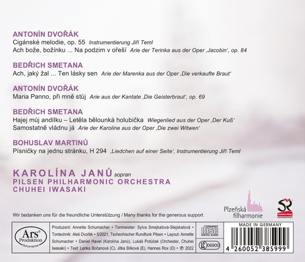 Beschreibung: | Karolína Janu completed her master's studies in the class of Prof. Jana Jonásová at the Faculty of Music and Dance of the Academy of Performing Arts in Prague. She continued her studies at the Academy of Classical Music of Codarts University of the Arts in Rotterdam under the direction of Professor Roberta Alexander. Her professional concert performances consist of Engagements with Orchestras like The Pilsen Philharmonic Orchestra, The Czech Chamber Philharmonic Orchestra Pardubice, The West-Bohemian Symphony Orchestra and The Prague Chamber Orchestra. Karolina is a well-known interpreter of Old Music and cooperates with Ensembles Collegium 1704, Ensemble Inégal, Barocco Sempre Giovane and The Czech Ensemble Baroque. On this release, she makes her debut with the Pilsen Philharmonic Orchestra under Chuhei Iwasaki, performing arias by Dvorák, Smetana and Martinu., Runningtime: 00:00:00, Labelcode ARSP38599.2 |