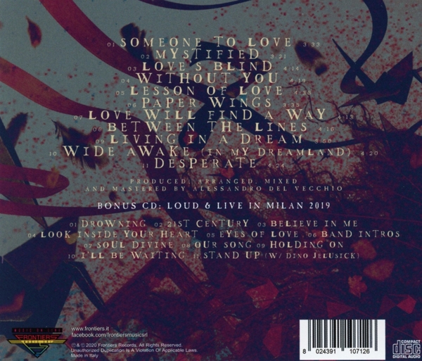| Beschreibung: | Arranged By: Alessandro Del Vecchio, Backing Vocals: Alessandro Del Vecchio, Backing Vocals [Additional Backing Vocals]: August Zadra, Bass, Keyboards: Alessandro Del Vecchio, Design [Web Design By]: Alex Philippi, Design [Web Design By]: Richard Mace, Drums: Edu Cominato, Engineer [Studio Assistant]: Andrea Seveso, Graphics, Artwork [Logos], Illustration [Imagery], Artwork: Gustavo Sazes, Guitar [Guitars]: Fabrizio Sgattoni, Management [JSS Is Represented Worldwide By]: Optical Sound Management, Performer [Live Band Uncredited]: BJ (23), Performer [Live Band Uncredited]: Edu Cominato, Performer [Live Band Uncredited]: Jeff Scott Soto, Performer [Live Band Uncredited]: Leo Mancini, Photography By [Photos By]: In Joy Photography, Photography By [Photos By]: Lexie Boezman Cataldo, Producer [Guitars Production By]: Kristal Cross, Producer [Produced By], Mixed By, Mastered By: Alessandro Del Vecchio, Recorded By [Drums Recorded By]: Adriano Daga, Recorded By [Vocals Recorded By], Engineer [Vocals Engineered By]: Jeff Scott Soto, Soloist, Guitar [Guitar Solo]: August Zadra, Vocals: Jeff Scott Soto, Musician [W/]: Dino Jelusi?, Labelcode FTTR1071.2 (FR CD 1071), Phonographic Copyright (p) Frontiers Records, Copyright (c) Frontiers Records, Published By Frontiers Records, Published By Oyez!, Published By Sewtoc Music, Recorded At Ivorytears Music Works, Recorded At Kristal Cross Music, Recorded At The Man Cave, Recorded At High Five Studios, Engineered At The Man Cave, Mixed At Ivorytears Music Works, Mastered At Ivorytears Music Works |  | Details zur Produktsicherheit