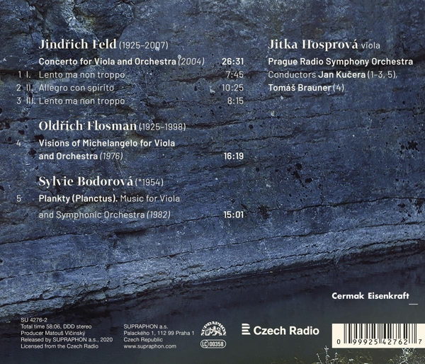 | | Beschreibung: | The viola's dark, velvety sound and it's depth of expression enchanted many composers of the twentieth century (Bartók, Martinu, Hindemith, Clarke etc.) who made major contributions to the instrument's repertoire. Jitka Hosprova, however, likes to stay off the beaten path. For her recording with the Prague Radio Symphony Orchestra, she has chosen three modern works composed in her homeland over a span of 30 years at the turn of the 20th and 21st centuries. Oldrich Flosman completed Visions of Michelangelo, a work that is now nearly forgotten, in 1975 on commission for celebrations of the 500th anniversary of Michelangelo's birth. Jindrich Feld's Viola Concerto, one of his last works, bears comparison with Bartók's and even exceeds it in terms of technical difficulty; the demands made on the soloist are quite extreme. Sylvie Bodorova's Planctus (the title refers to a Medieval form, the "laments of the Virgin Mary") reflects the gloom, stress, and hopelessness of life in communist Czechoslovakia of the 1980s. In all three movements, the deep intimacy of the viola stands in contrast to the massive symphonic sound of the orchestra. More than any other instrument, the viola has a tone that reaches the innermost world of the composer and of the subject matter. On this revelatory, technically virtuosic recording of rarely played works, Jitka Hosprova brings back to life three works that definitely deserve the attention of performers and listeners. Modernity and traditional form, totality and freedom - three Czech viola concertos from the turn of the millennium, Runningtime: 00:00:00, Booklet Editor: Daniela Bálková, Conductor: Jan Ku?era (2), Conductor: Tomá? Brauner, Engineer [Recording Engineers]: Jakub Hadraba, Engineer [Recording Engineers]: Jan L?i?a?, Engineer [Recording Engineers]: Zden?k ?o?ek, Liner Notes [Interview]: Jitka Hosprová, Liner Notes [Interview]: Luká? Hurník, Liner Notes [Tradiction]: Ji?ina Rodolphe, Liner Notes [Translation]: Hilda Hearne, Liner Notes [Übersetzung]: Hubert Reitterer, Liner Notes [Übersetzung]: Vlasta Reittererová, Mastered By [Mastering]: Jan L?i?a?, Orchestra: Prague Radio Symphony Orchestra, Photography By [Photos On Page 21]: Luká? Pot??ek, Photography By [Photos On Page 21]: Vojt?ch Havlík, Photography By [Photos]: Bet Orten, Producer: Matou? Vl?inský, Recording Supervisor [Recording Director]: Ji?í Gemrot, Recording Supervisor [Recording Director]: Milan Puklický, Viola: Jitka Hosprová, Composed By: Jind?ich Feld, Composed By: Old?ich Flosman, Composed By: Sylvie Bodorová, Labelcode SPP4276.2 (SU 4276-2), Record Company Supraphon a.s., Licensed From ?eský Rozhlas, Phonographic Copyright (p) Supraphon a.s., Phonographic Copyright (p) ?eský Rozhlas, Copyright (c) HMS Design, Copyright (c) Bet Orten, Copyright (c) Luká? Hurník, Copyright (c) Hilda Hearne, Copyright (c) Vlasta Reittererová, Copyright (c) Hubert Reitterer, Copyright (c) Ji?ina Rodolphe, Recorded At Studio 1 ?eského Rozhlasu Praha, Glass Mastered At GZ Media, Pressed By GZ Media, Designed At HMS Design |  | | Herstellernummer: |