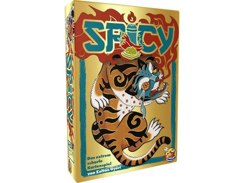 Warnhinweis: Spicy ist ein Bluff-Kartenspiel für 2-6 Spieler. Die Karten werden verdeckt ausgespielt, sodass man bei der Ansage seiner Karte schon mal flunkern kann. Doch bei diesem cleveren Kartenspiel geht es nicht einfach nur darum, überzeugend zu bluffen. Denn eine Karte, die zumindest halb richtig ist, kann man bei geschicktem Abspielen von der Kartenhand fast immer spielen. Da gilt es taktisch zu überlegen, mit welcher Karte man wohl durchkommt. Neben dem eigentlichen Spiel enthält Spicy 6 Spielvariantenkarten, doch auch ohne diese ist ein hoher Wiederspielreiz garantiert. Die Karten sind liebevoll mit insgesamt 40 eigenständigen Illustrationen versehen. Außerdem glänzt nicht nur die Spielschachtel in schickem Metallic-Gold, sondern auch die Kartenrückseiten ziert ein goldfarbener Sonderdruck.