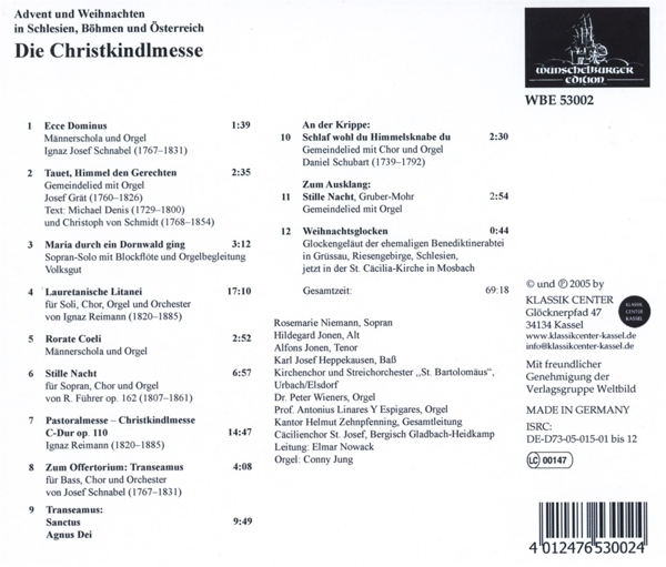 Alto Vocals: Hildegard Jonen, Orchestra: St. Bartolomäus, Organ: Dr. Peter Wieners, Soprano Vocals: Rosemarie Niemann, Tenor Vocals: Alfons Jonen, Labelcode WBE53002 (WBE 53002)