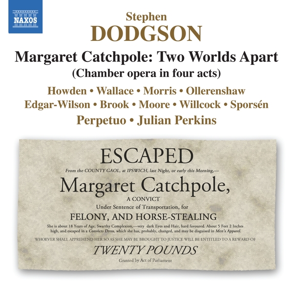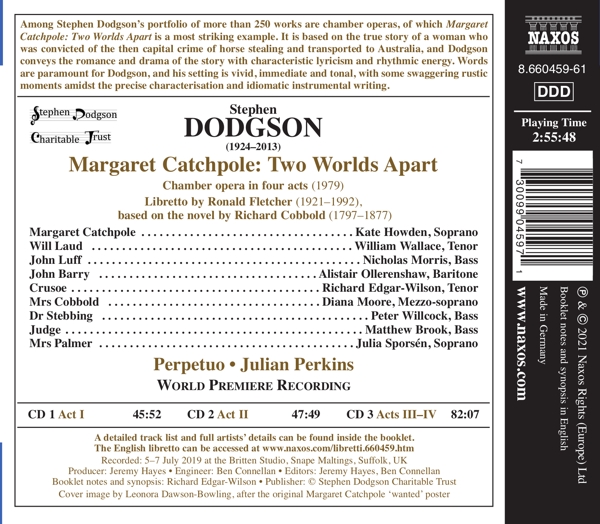 Disc 01 Margaret Catchpole: Two Worlds Apart (Oper in 4 Akten) (Gesamtaufnahme) 01. "Introduktion (1. Akt)" 02. "What an almighty fuss" 03. "For so many years" 04. "Oh harvest moon" 05. "Under that far and shining sky" 06. "The harvest is ended" 07. "Oh, my goodness gracious - look!" 08. "Margaret?" 09. "The ripen'd corn in sheaves is born" 10. "Intermezzo" 11. "Seasons come, seasons go" 12. "Who's there?" 13. "Come, Will. Enough's enough." 14. "No! No!" 15. "Back you devils"