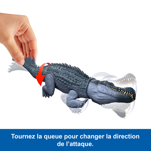| | Beschreibung: | Diese Gigantic Thrashers Purussaurus-Actionfigur basiert auf dem Film Jurassic World: Die Wiedergeburt und hat zwei dramatische, mit dem Schwanz aktivierte Angriffsbewegungen! Gesamtattacke! Mit dem Schwanz werden die Attacken gesteuert: Bewegungen nach oben und unten starten einen vertikalen Beißangriff, und nach rechts und links kombiniert den Beißangriff mit knochenbrechenden Stößen! Mit einer Länge von ca. 37 cm und der authentischen Gestaltung, Farbe und Textur ist dieser große, bewegliche Dinosaurier bereit für den Kampf oder für dramatische Posen. Durch Scannen des Tracking-Codes auf dem Fuß des Dinosauriers in der kostenlosen Jurassic World Play App mit einem kompatiblen Smart-Gerät (Android oder iOS, nicht enthalten) werden eine digitale Version des Dinosauriers sowie ein lustiges Spiel freigeschaltet, bei dem man mit verschiedenen Fahrzeugen an Land, in der Luft und im Wasser Rennen fährt. Perfekt für Dinosaurierfans ab 4 Jahren. Abweichungen in Farbe und Gestaltung vorbehalten. |  | | Mindestalter: |