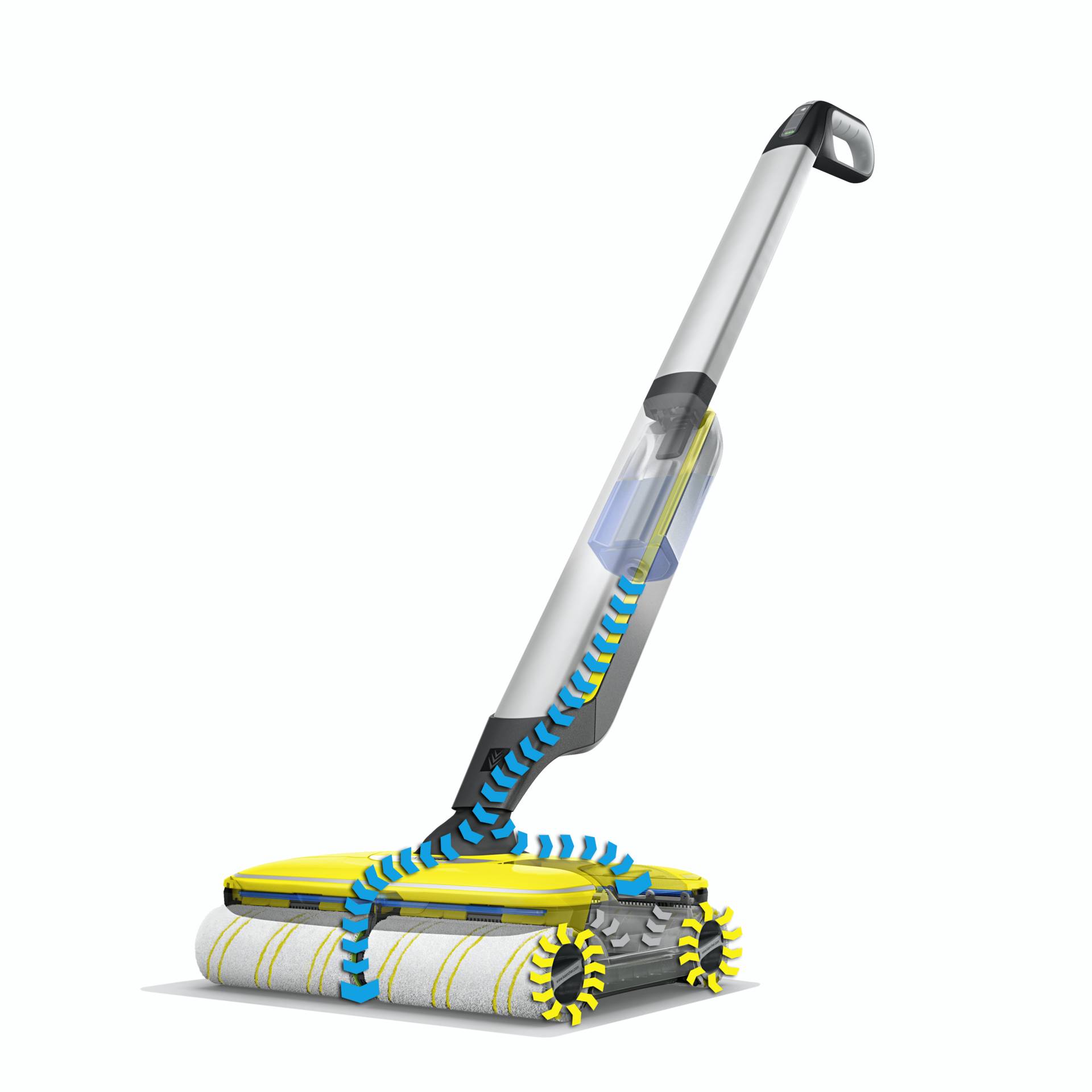Der Hartbodenreiniger FC 7 Cordless nimmt sowohl trockenen als auch feuchten Alltagsschmutz in nur einem Schritt auf. Saugen vor dem Wischen ist nicht mehr nötig, was 50 % Zeit spart. Seine 4-Walzen-Technologie mit gegenläufiger Rotation ermöglicht schnelles und effektives Reinigen mit hoher Schmutzlösung sowie ein sanftes Gleiten über den Boden. Selbst Haare werden dank des Haarfilters problemlos aufgenommen. Die Böden sind nach der Reinigung bis zu 20 % sauberer als bei herkömmlichen Wischmopps - bis unmittelbar an den Rand. Das lästige Eimerschleppen bleibt für immer erspart, da der Hartbodenreiniger sowohl einen Frisch- als auch einen Schmutzwassertank enthält. Auch Schmutzkontakt gehört der Vergangenheit an, da die Walzen permanent mit frischem Wasser befeuchtet werden und das Schmutzwasser direkt im Schmutzwassertank landet. Wassermenge sowie Rotationsgeschwindigkeit der Walzen lassen sich passend zum Boden in 2 Reinigungsmodi einstellen. Zudem gibt es eine Boost-Funktion gegen hartnäckigen