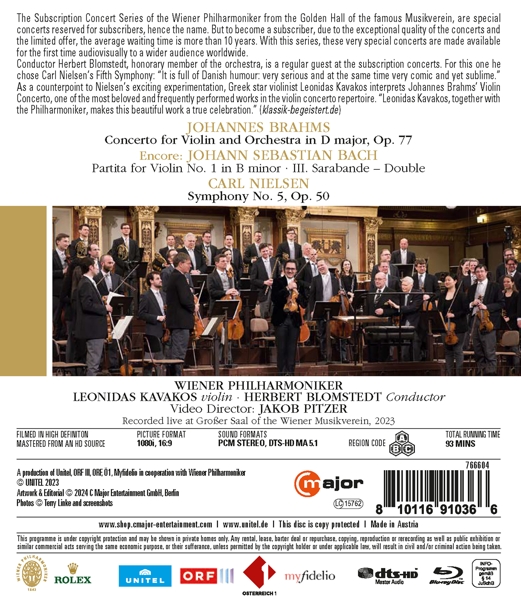 Beschreibung:The Subscription Concert Series of the Wiener Philharmoniker from the Golden Hall of the famous Musikverein are special concerts reserved for subscribers. Due to the exceptional quality of the concerts and the limited offer, the average waiting time for subscribers is more than 10 years. With this series, these very special concerts are made available for the first time audiovisually to a wider audience worldwide. Conductor Herbert Blomstedt, honorary member of the orchestra, is a regular guest at the subscription concerts. For this one he chose Carl Nielsen's Fifth Symphony: "It is full of Danish humour: very serious and at the same time very comic and yet sublime. " As a counterpoint to Nielsen's exciting experimentation, Greek star violinist Leonidas Kavakos interprets Johannes Brahms' Violin Concerto, one of the most beloved and frequently performed works in the violin concerto repertoire. "Leonidas Kavakos, together with the Philharmoniker, makes this beautiful work a true celebration. " (klassik-begeistert. De) Program:Johannes Brahms: Concerto for Violin and Orchestra J. S. Bach: Partita for violin solo No. 1, III. Sarabande - DoubleCarl Nielsen: Symphony No. 5, Runningtime: 00:00:00, Labelcode CMAJ766604BR