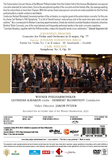 Beschreibung:The Subscription Concert Series of the Wiener Philharmoniker from the Golden Hall of the famous Musikverein are special concerts reserved for subscribers. Due to the exceptional quality of the concerts and the limited offer, the average waiting time for subscribers is more than 10 years. With this series, these very special concerts are made available for the first time audiovisually to a wider audience worldwide. Conductor Herbert Blomstedt, honorary member of the orchestra, is a regular guest at the subscription concerts. For this one he chose Carl Nielsen's Fifth Symphony: "It is full of Danish humour: very serious and at the same time very comic and yet sublime. " As a counterpoint to Nielsen's exciting experimentation, Greek star violinist Leonidas Kavakos interprets Johannes Brahms' Violin Concerto, one of the most beloved and frequently performed works in the violin concerto repertoire. "Leonidas Kavakos, together with the Philharmoniker, makes this beautiful work a true celebration. " (klassik-begeistert. De) Program:Johannes Brahms: Concerto for Violin and Orchestra J. S. Bach: Partita for violin solo No. 1, III. Sarabande - DoubleCarl Nielsen: Symphony No. 5, Runningtime: 00:00:00, Labelcode CMAJ766508DVD