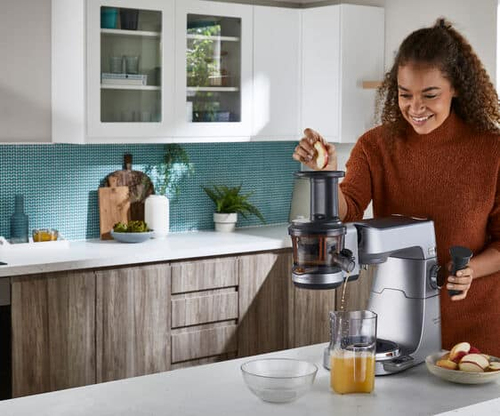 | Beschreibung: | Holen Sie das Beste aus Obst und Gemüse heraus. Karotten, Zucchini und sogar Gurken können mühelos entsaftet werden. Geschälte Zitrusfrüchte sind ebenfalls kein Problem und Sie können sogar Ihre eigene Mandelmilch herstellen - perfekt bei Laktoseintoleranz oder wenn Sie einfach Wert auf gesunde Ernährung legen. Mit dem Trester-Behälter fangen Sie das Fruchtfleisch auf und können es dann für Kuchen, Brownies oder Falafel weiterverwenden. Passend für alle Chef und kMix Küchenmaschinen Twist-Anschluss, passend für den Niedrigdrehzahlanschluss 400ml Saftbehälter Trester-Behälter - verwenden Sie den Trester zur Zubereitung von Kuchen, Brownies oder Falafel Anti-Tropf Stop Reinigungsbürste Sicherheitssystem Hauptmerkmale Funktionen Produktfarbe Grau, Silber Gehäusematerial Kunststoff Schüsselkapazität 0,4 l Kompatibilität Classic KM330 kMix KMX754 Chef KVC3100 Chef XL KVL4100 Premier KMC510 Premier Major KMM770 Chef Sense KVC50 Chef XL Sense KVL6 Chef XL Elite KVL6300 Chef XL Titanium KVL8300grau/silber-Slow Juicer-Direkter Saftauslauf, Fruchtfleisch-/Tresterbehälter, Anti-Tropf-SystemManufacturer-Nr.: KAX720PLDer Kenwood KAX720PL Slow Juicer ist ein hochwertiges Küchengerät zur schonenden Saftherstellung aus Obst und Gemüse bei maximaler Nährstoffausbeute. Mit seinem leistungsstarken und dennoch leisen Motor arbeitet dieser Entsafter mit niedriger Drehzahl ? so werden Hitzeentwicklung und Oxidation minimiert und Vitamine sowie natürliche Aromen bleiben erhalten. Der KAX720PL verfügt über ein benutzerfreundliches Design mit spülmaschinenfesten Teilen sowie zwei Sieben für unterschiedliche Saftkonsistenzen. Dank seiner robusten Bauweise verarbeitet er sowohl Blattgemüse als auch harte Wurzeln wie Karotten oder weiches Obst mühelos. Als Teil von Kenwoods Nachhaltigkeitsstrategie wird das Gerät aus langlebigen Materialien gefertigt ? dies sorgt für eine lange Lebensdauer und weniger Abfall im Laufe der Zeit. Seit 1947 steht die Marke Kenwood weltweit für innovative Küchenlösungen; sie engagiert sich aktiv in umweltfreundlichen Produktions- und Verpackungsprozessen zur Reduzierung des ökologischen Fußabdrucks. Mit dem Kauf des KAX720PL Slow Juicers genießen Kunden nicht nur gesunde Säfte zu Hause, sondern leisten auch einen wertvollen Beitrag zum Umweltschutz. |  | | Spannung: |