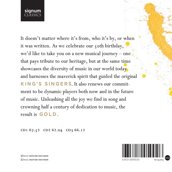 | Beschreibung: | The King's Singers celebrate their 50th anniversary with a celebratory 3-album set, combining three complete programs of Close Harmony, Spiritual and Secular pieces. The King's Singers write: "The current incarnation of King's Singers approached this 50th Anniversary release with great excitement - albeit with some trepidation! How could we possibly create an album (or, as it turned out, three albums!) that would reflect all the group's work over five decades, honoring it's history and the achievements of our predecessors? In the end, we decided to go back to basics. We spent months trawling through programs and recordings to finalize this selection of music: old favorites that the group has performed for decades jostle for position with more recent additions (both classical and pop), and compete with brand new works commissioned especially for this project. A long-list of well over a hundred pieces has been whittled down to a final track-list of around sixty that, we feel, represents all the styles and musical epochs that The King's Singers have championed across five decades of performance and recording.", Runningtime: 00:00:00, Labelcode SGUK500.2 |