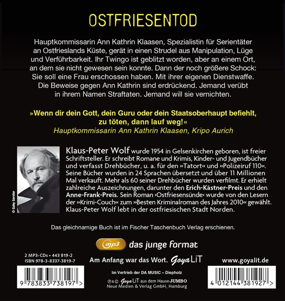 Disc 01 01. Reuters, Inga "Ansage" 02. Wolf, Klaus-Peter "Es Hatte Alles Ganz" 03. Wolf, Klaus-Peter "Ann Kathrin Klaasen" 04. Wolf, Klaus-Peter "Gudrun Garthoff Wusste" 05. Wolf, Klaus-Peter "Ann Kathrin Hatte" 06. Wolf, Klaus-Peter "Die Fuenfzehnjaerige Chantal Haase" 07. Wolf, Klaus-Peter "Weller Reagierte Nicht" 08. Wolf, Klaus-Peter "Sigmar Hielt Es Nicht" 09. Wolf, Klaus-Peter "Die Fensterscheiben Der" 10. Wolf, Klaus-Peter "Weller Legte Auf" 11. Wolf, Klaus-Peter "Ich Kann Nicht Nach Hause" 12. Wolf, Klaus-Peter "Sie Sass Im Panoramarestaurant" 13. Wolf, Klaus-Peter "Polizeichef Martin Buescher" 14. Wolf, Klaus-Peter "Martin Buescher Wirkte" 15. Wolf, Klaus-Peter "Rupert Betrat Das Buero" 16. Wolf, Klaus-Peter "Weller Immer Auf Der Suche" 17. Wolf, Klaus-Peter "Es War Ein Altes" 18. Wolf, Klaus-Peter "Also Was Kann Ich" 19. Wolf, Klaus-Peter "Da Muss Ausgerechnet" 20. Wolf, Klaus-Peter "Der Gang Zu Angehoerigen" 21. Wolf, Klaus-Peter "Ann Kathrin Zog" 22. Wolf, Klaus-Peter "In Dem Moment" 23. Wolf, Klaus-Peter "Frau Hinrichs Lud Sich" 24. Wolf, Klaus-Peter "Als Ann Kathrin In Den" 25. Wolf, Klaus-Peter "Ubbo Heide Der Ehemalige" 26. Wolf, Klaus-Peter "Als Ann Kathrin Aufwachte" 27. Wolf, Klaus-Peter "In Der Polizeiinspektion Aurich" 28. Wolf, Klaus-Peter "Bevor Jetzt Eine" 29. Wolf, Klaus-Peter "Kaum Waren Ann Kathrin" 30. Wolf, Klaus-Peter "Astrid Wohnte Im" 31. Wolf, Klaus-Peter "Ann Kathrin Bewunderte" 32. Wolf, Klaus-Peter "Weller Versuchte Am Computer" 33. Wolf, Klaus-Peter "Es Kam Rupert Vor" 34. Wolf, Klaus-Peter "Der Zug Fuhr An" 35. Wolf, Klaus-Peter "Sie Sass Mit Drei" 36. Wolf, Klaus-Peter "Wenn Carola Heide" 37. Wolf, Klaus-Peter "Sie Liess Die Unordnung" 38. Wolf, Klaus-Peter "Rupert Interessierte Sich" 39. Wolf, Klaus-Peter "Daniela Bass Wohnte" 40. Wolf, Klaus-Peter "Frau Bass Stand Auf" 41. Wolf, Klaus-Peter "Ann Kathrin Klaasen Sah" 42. Wolf, Klaus-Peter "Ann Kathrin War Schon Auf" 43. Wolf, Klaus-Peter "Weller Hielt Immer Noch" 44. Wolf, Klaus-Peter "Sie Sass Im Dwarslooper" 45. Wolf, Klaus-Peter "Sigmar Ging In Norddeich" 46. Wolf, Klaus-Peter "Er Rannte Jetzt So" 47. Wolf, Klaus-Peter "Maggie Tippte Mit" 48. Wolf, Klaus-Peter "Sie Beschloss In Richtung" 49. Wolf, Klaus-Peter "In Grosse Saunatuecher" 50. Wolf, Klaus-Peter "Sie Hatten Sich Bis Zur" 51. Wolf, Klaus-Peter "Im Grunde Gefiel Es" 52. Wolf, Klaus-Peter "In Der Garage" 53. Wolf, Klaus-Peter "Im Distelkamp Stand" 54. Wolf, Klaus-Peter "Sie Begann Zu Weinen" 55. Wolf, Klaus-Peter "Die Anspannung Stand" 56. Wolf, Klaus-Peter "Dieser Vorwurf Ging In" 57. Wolf, Klaus-Peter "Einerseits Wollte Giovanni Schmidt" 58. Wolf, Klaus-Peter "Scheiss Kontaktsperre" 59. Wolf, Klaus-Peter "Sie Hatte Die Rolllaeden" 60. Wolf, Klaus-Peter "Die Jobangebote Wurden" 61. Wolf, Klaus-Peter "Die Junge Staatsanwaeltin" 62. Wolf, Klaus-Peter "Ann Kathrin Schnitt Den" 63. Wolf, Klaus-Peter "Sigmar Versuchte Alles" 64. Wolf, Klaus-Peter "Noch Waere Ich In Der Lage" 65. Wolf, Klaus-Peter "Rupert Musste Gemeinsam" 66. Wolf, Klaus-Peter "Dann Erst Entdeckte Rupert" 67. Wolf, Klaus-Peter "Als Katja Schubert Die" 68. Wolf, Klaus-Peter "Obwohl Es Draussen Noch" 69. Wolf, Klaus-Peter "Gudrun Garthoff Parkte" 70. Wolf, Klaus-Peter "Justin Stand Vor Der Tuer" 71. Wolf, Klaus-Peter "Sigmar Eilts Floh In" 72. Wolf, Klaus-Peter "Weller Und Ann Kathrin" 73. Wolf, Klaus-Peter "Katjas Nasennebenhoehlen Waren" 74. Wolf, Klaus-Peter "Sigmar Eilts Machte Den" 75. Wolf, Klaus-Peter "Er Liess Sich Auf Den" 76. Wolf, Klaus-Peter "Jetzt Drehte Sie Ihm" 77. Wolf, Klaus-Peter "Buescher Staunte" 78. Wolf, Klaus-Peter "Sigmar Eilts Fand" 79. Wolf, Klaus-Peter "In Dieser Verfahrenen Situation" 80. Wolf, Klaus-Peter "Ann Kathrin Registrierte" 81. Wolf, Klaus-Peter "Kaja Schubert Hatte Jede" 82. Wolf, Klaus-Peter "Wir Machen Sagte Die" 83. Wolf, Klaus-Peter "Die Reporterin Schob" 84. Wolf, Klaus-Peter "Frank Weller Sass" 85. Wolf, Klaus-Peter "Weller Unterhielt Sich Am" 86. Wolf, Klaus-Peter "Die Lagebesprechung Fand" 87. Wolf, Klaus-Peter "Weller Informierte Ann Kathrin" 88. Wolf, Klaus-Peter "Als Weller Das Haus Im" 89. Wolf, Klaus-Peter "Weller Oeffnete Die Tuer" 90. Wolf, Klaus-Peter "Sie Zeigte Auf Die Kerzen" 91. Wolf, Klaus-Peter "Giovanni Schmidt War Mit" 92. Wolf, Klaus-Peter "So Viel Hatte Ruper" 93. Wolf, Klaus-Peter "Katja Schubert Bekam Durch" 94. Wolf, Klaus-Peter "Er Versucht Die Ganze Zeit" 95. Wolf, Klaus-Peter "Charlie Thiekoetter Hatte" 96. Wolf, Klaus-Peter "Er Hatte Zum Fruehstueck" 97. Wolf, Klaus-Peter "Ihre Finger Bewegten Sich" 98. Wolf, Klaus-Peter "Ann Kathrin Klaasen" 99. Wolf, Klaus-Peter "Der Taeter War Nicht" 00. Wolf, Klaus-Peter "Was Rupert Am Meissten" 01. Wolf, Klaus-Peter "Ich Weiss Gar Nicht Wo Ich" 02. Wolf, Klaus-Peter "Giovanni Schmidt Fuhr Mit"
