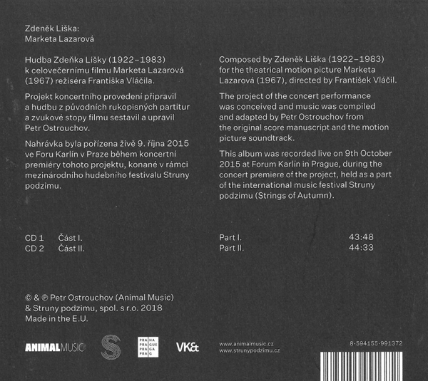 Beschreibung: | Art Direction: Michal Nanoru, Choir: Martin? Voices, Compiled By, Adapted By, Producer: Petr Ostrouchov, Composed By: Zden?k Li?ka, Conductor: Radek Baborák, Conductor, Chorus Master: Luká? Vasilek, Coordinator [Manufacturing]: Ivan Prokop, Design: Jakub Spurný, Directed By [Directorial Co-Operation]: Jan Jirá?, Edited By, Mixed By: Milan Cimfe, Edited By, Mixed By: Petr Ostrouchov, Ensemble: Baborák Ensemble, Liner Notes [Czech]: Jan ?erní?ek, Liner Notes [English Translation]: Adam Prentis, Mastered By: Adam Karlík, Mastered By: Pavel Karlík, Photography By [Concert Photos]: Petra Hajská, Photography By [Film Stills]: Bed?ich Ba?ka, Recorded By: Milan Cimfe, Sampler: Petr Ostrouchov, Score Editor [Score Preparation]: Libor Ma?ek, Score Editor [Score Preparation]: Petr Ostrouchov, Soprano Vocals: Kate?ina Kn??íková, Tenor Vocals: Josef Moravec, Voice Actor: Anna Kratochvílová (2), Voice Actor: Jana ?t?pánková, Voice Actor: Josef Somr, Voice Actor [Excerpt From The Original Soundtrack Of The Film Marketa Lazarová]: Vladimír Men?ík, Labelcode ANMC71.2 (ANI 071-2), Phonographic Copyright (p) Petr Ostrouchov, Phonographic Copyright (p) Struny Podzimu, spol. s r.o., Copyright (c) Petr Ostrouchov, Copyright (c) Struny Podzimu, spol. s r.o., Recorded At Forum Karlín, Mixed At Sono Studio, Mastered At Sono Studio |