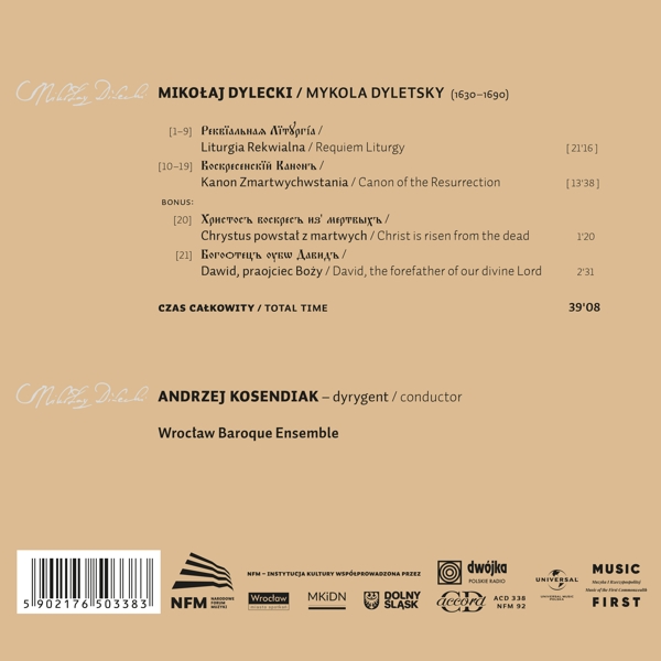 Requiem-Liturgie 01. "Jednorodzony Synu (O einziger Sohn)" 02. "Ektenia mala (Die kleine Litanei)" 03. "Przyjdzcie, poklonmy sie (O kommt, lasst uns verehren)" 04. "Trisagion (Die Dreifaltigkeit)" 05. "Alleluja" 06. "Ektenia zarliwa (Litanei des inbrünstigen Flehens)" 07. "Piesn Cherubinow (Hymne der Cherubim)" 08. "Milosierdzie, pok¢j (Eine Gnade, ein Frieden)" 09. "Godna rzecza jest (Würdig ist es)" Kanon zmartwychwstania (Kanon der Auferstehung) 10. "Zmartwychwstania dzien (Heute ist der Tag der Auferstehung)" 11. "Przyjdzcie, pijmy nap¢j nowy (Kommt, lasst uns ein neues Getr?nk trinken)" 12. "W Boskiel strazy (Auf dem g?ttlichen Wachturm)" 13. "Powstanmy ze snu o bladym switaniu (Lasst uns früh am Morgen aufstehen)" 14. "Zstapiles w otchlanie ziemi (O Christus, in den tiefsten Abgrund der Erde stiegst du hinab)" 15. "Powstal Jezus z grobu (Jesus, aus dem Grab aufgestiegen)" 16. "Ten, co mlodzienc¢w z pieca ognistego wyrwal (Er, der die Kinder vor dem Ofen rettete)" 17. "Ten dzien (Wahrlich, dieser Tag)" 18. "Zajasniej, zajasniej, Jerozolimo (Leuchte, leuchte, o neues Jerusalem)" 19. "Zasnales w ciele jako martwy (Als du im K?rper als Sterblicher entschlafen bist)" 20. "Chrystus powstal z martwych (Christus ist von den Toten auferstanden)" 21. "Dawid, praojciec Bozy (David, der Vorfahr unseres g?ttlichen Herrn)"