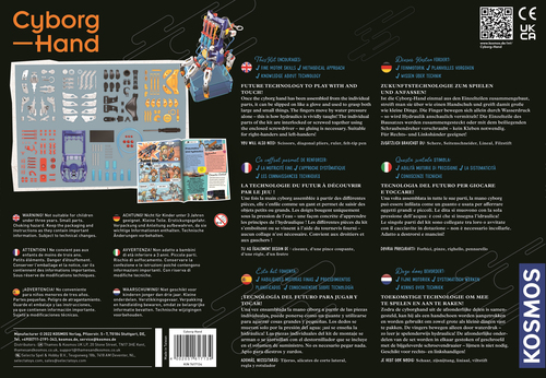 Der Hersteller Kosmos steht seit Jahrzehnten für qualitativ hochwertiges Lernspielzeug mit hohem pädagogischem Wert und setzt auf nachhaltige Produktion: Recycelbare Materialien sowie umweltschonende Fertigungsverfahren sind zentrale Bestandteile der Firmenphilosophie. Mit dem Kauf der Cyborg-Hand leisten Kunden einen aktiven Beitrag zum Umweltschutz und unterstützen verantwortungsbewusste Bildungsförderung.