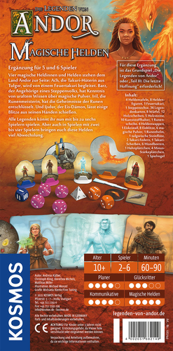 Die Legenden von Andor ? Magische Helden ist eine spannende Erweiterung für das preisgekrönte kooperative Brettspiel aus dem Hause Kosmos. Diese Edition bringt neue magische Helden mit individuellen Fähigkeiten und Hintergrundgeschichten ins Spiel und sorgt so für noch mehr strategische Vielfalt im sagenumwobenen Land Andor. Die Erweiterung ist geeignet für 2?4 Spieler ab 10 Jahren und benötigt ein Grundspiel der Legenden von Andor zum Spielen. Hochwertige Komponenten wie detailreiche Heldentafeln, Marker und Karten sowie liebevoll gestaltete Illustrationen garantieren stundenlangen Spielspaß auf hohem Niveau. Der Hersteller Kosmos steht seit Jahrzehnten für innovative Spielekonzepte mit pädagogischem Mehrwert und legt großen Wert auf Nachhaltigkeit: Umweltfreundliche Materialien sowie ressourcenschonende Produktionsverfahren sind fester Bestandteil der Firmenphilosophie ? Ihr Kauf unterstützt somit aktiv den Umweltschutz! Mit diesem Produkt erleben Sie nicht nur fantastische Abenteuer; Sie leisten auch einen wertvollen Beitrag zu einer besseren Zukunft.