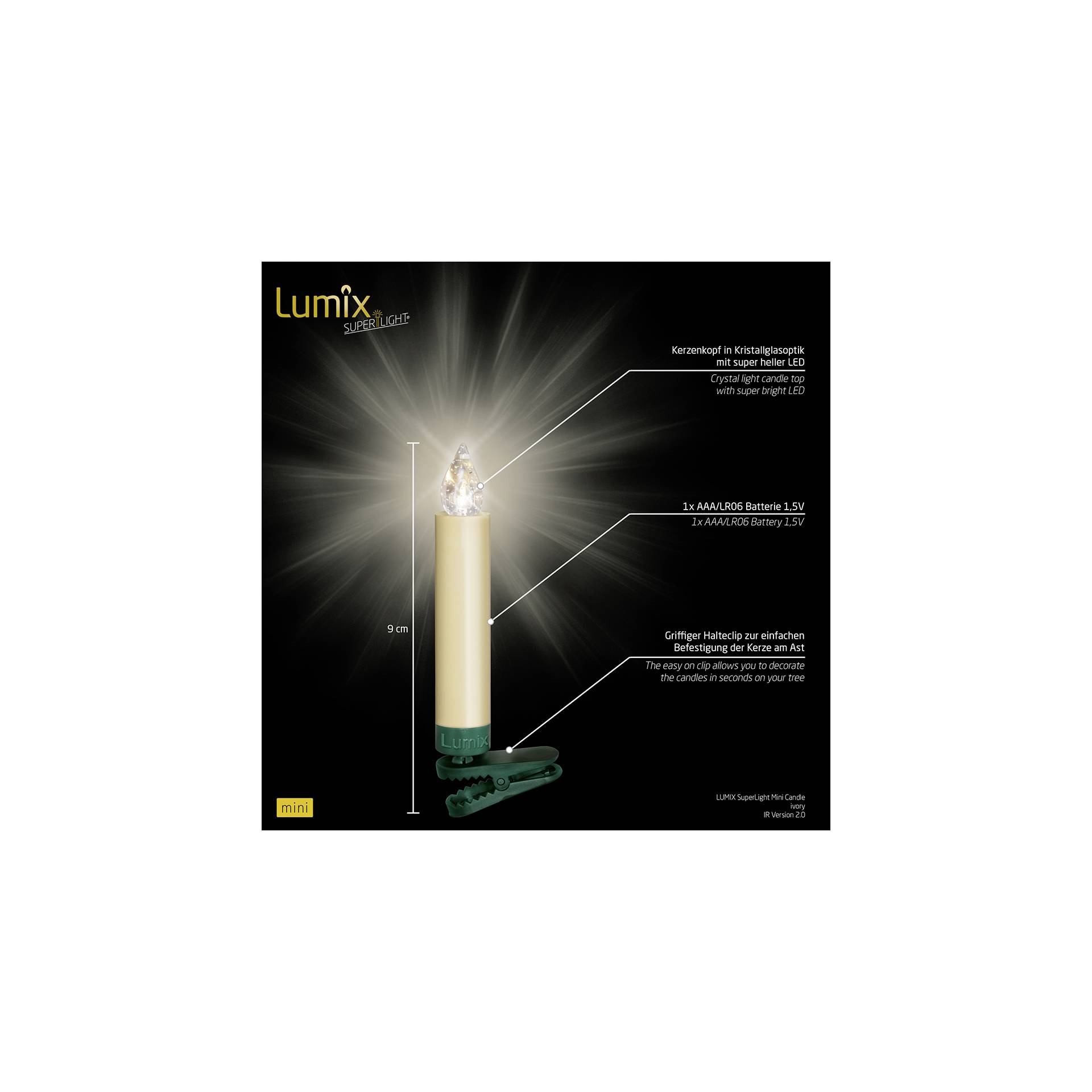 Beschreibung:Das Produkt "Lumix Superlight Mini 12er Basis Set Elfenbein" von Krinner beinhaltet 1 Stück(e) je Packung. Der Artikel benötigt 12 Batterie(n) und hat die Farbe Grün, Elfenbein. Das Gerät ist über Batterie/Akku mit einer Energiequelle verbunden.