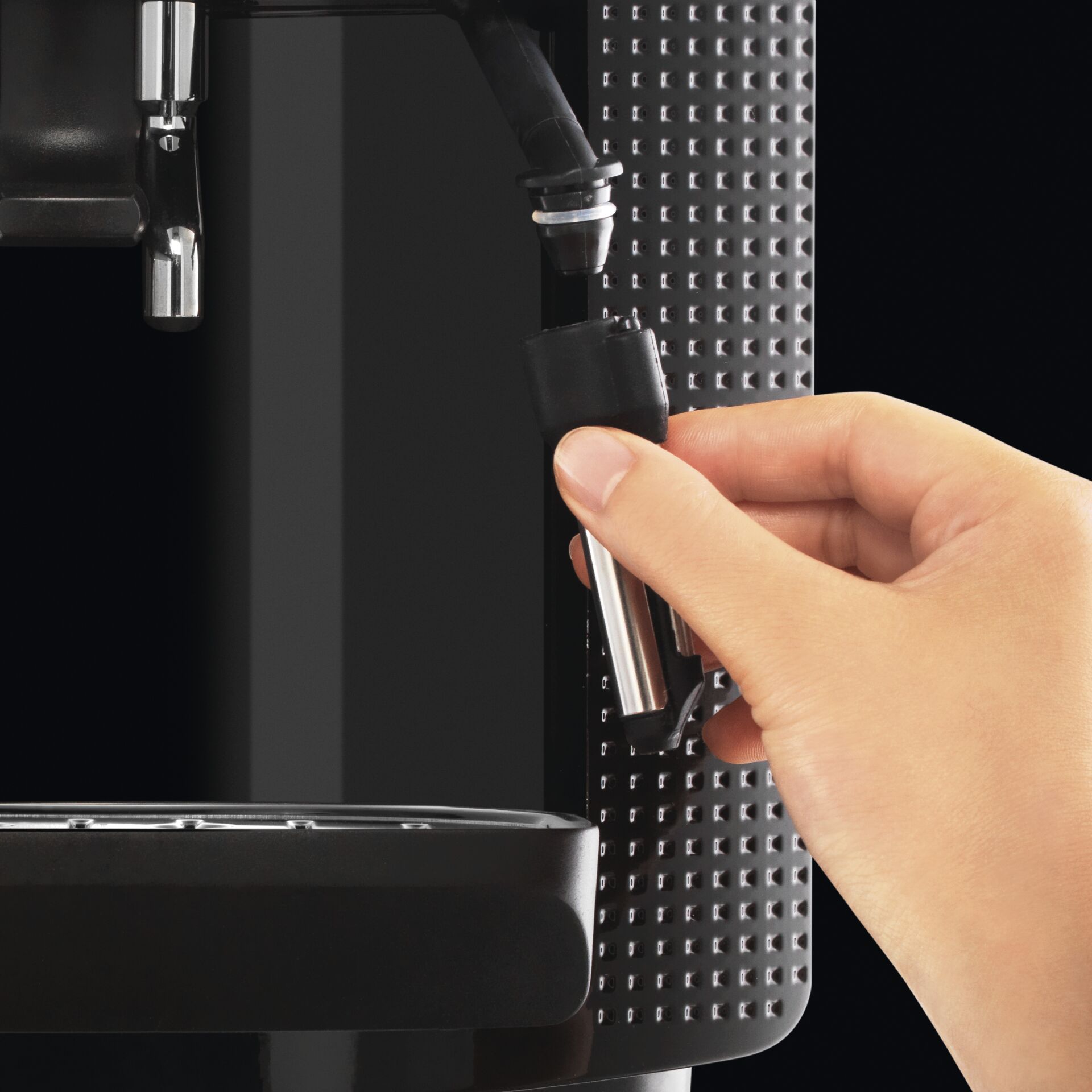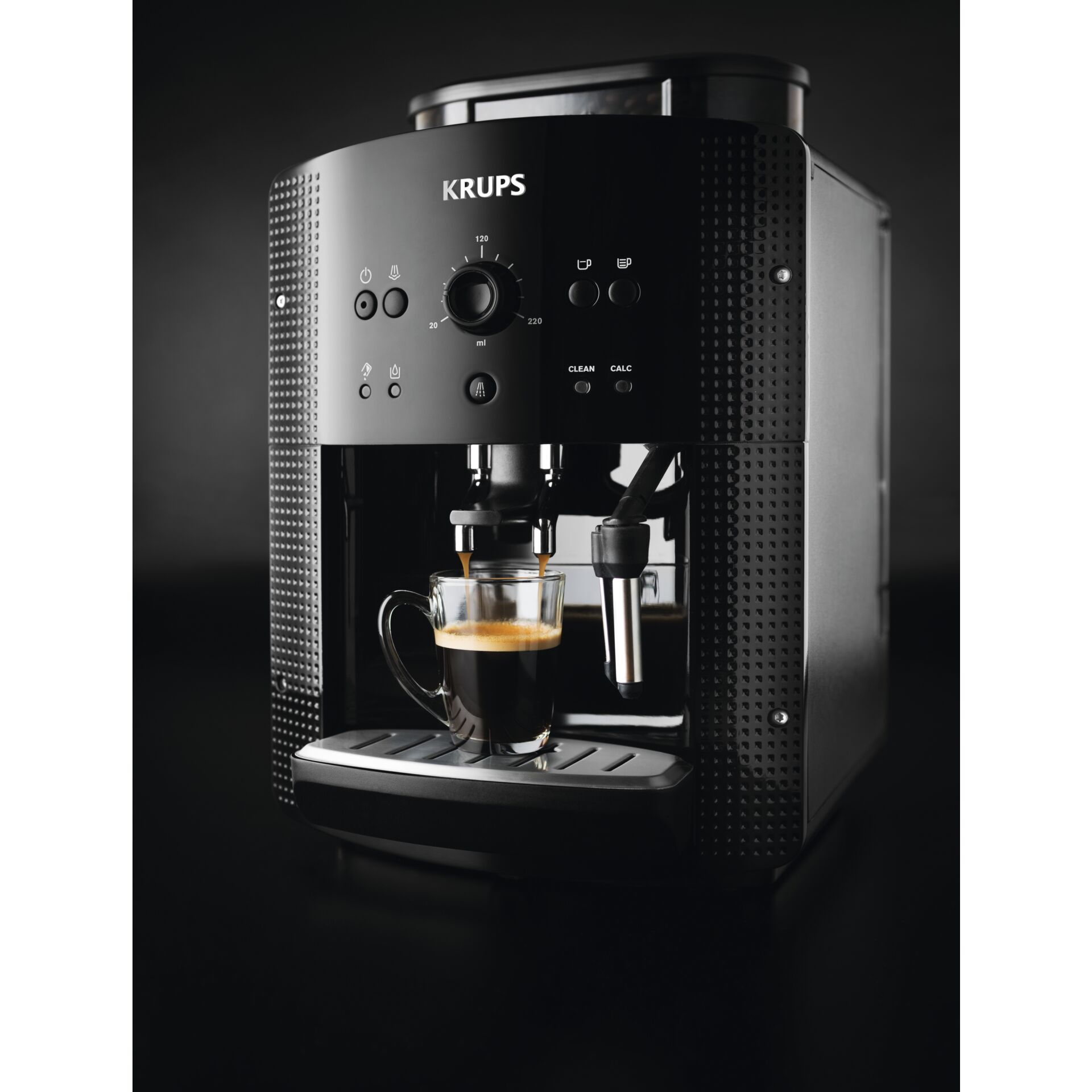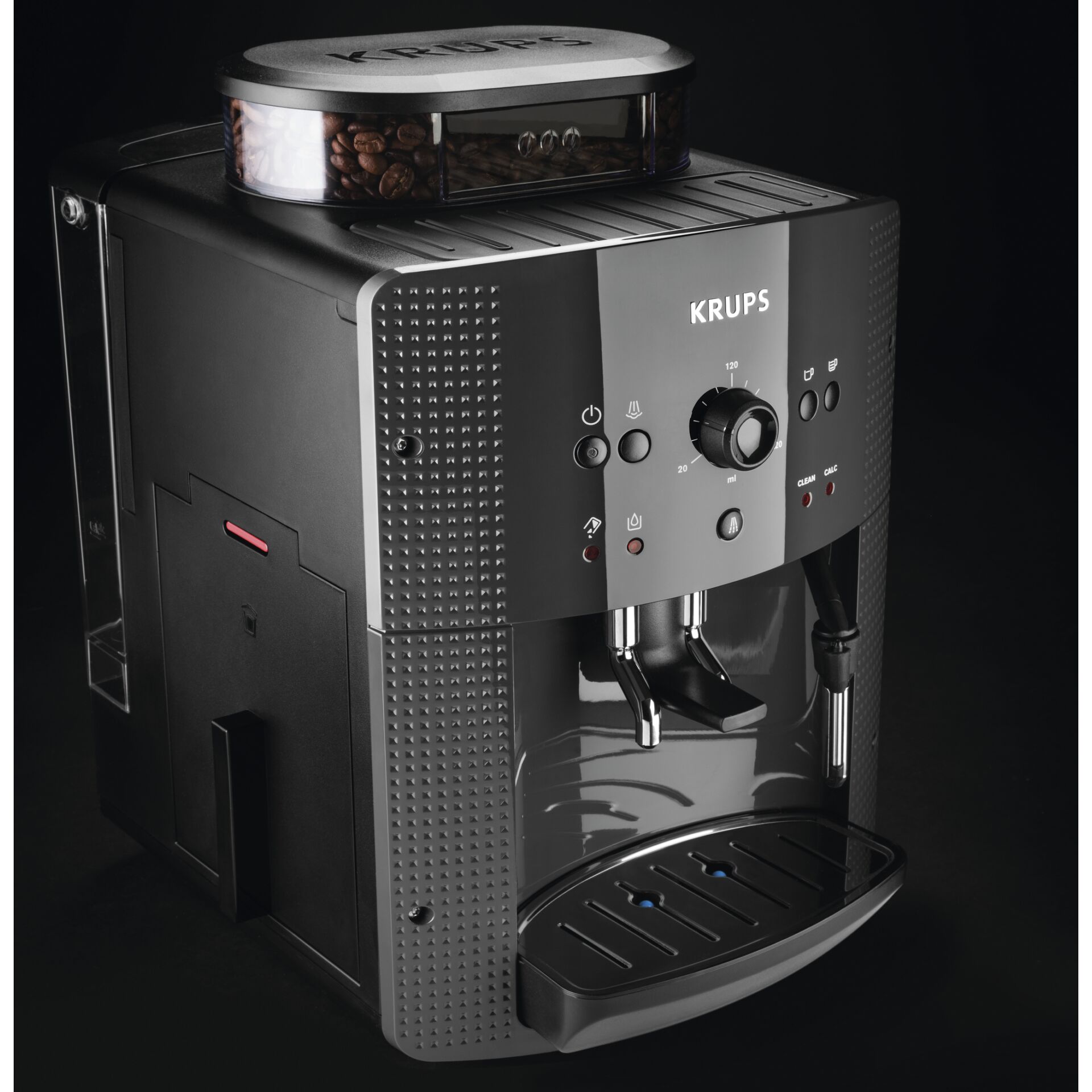 Die Krups EA 810 B ist ein vollautomatischer Kaffeevollautomat für Kaffeeliebhaber mit hohen Ansprüchen an Komfort und Qualität. Das kompakte Gerät verfügt über ein leistungsstarkes Pumpendrucksystem mit 15 bar sowie eine integrierte Kegelmahlwerk-Mühle mit individuell einstellbarem Mahlgrad und eine intuitive Bedienoberfläche zur Anpassung von Kaffeestärke und Tassenmenge nach Wunsch. Mit der Dampfdüse lassen sich cremiger Milchschaum für Cappuccino oder Latte Macchiato einfach zubereiten. Der herausnehmbare Wassertank (1,8 Liter) und die abnehmbare Abtropfschale erleichtern Reinigung und Pflege erheblich. Als Teil des renommierten deutschen Herstellers Krups ? bekannt für Präzision seit 1846 ? überzeugt die EA 810 B durch Langlebigkeit und Zuverlässigkeit im Alltagseinsatz. Nachhaltigkeit steht bei Krups im Fokus: energieeffiziente Geräteentwicklung, recycelbare Verpackungen sowie langlebige Produktkonzepte sorgen dafür, dass Sie beim Kauf dieses Modells nicht nur Ihren Genuss steigern sondern auch einen Beitrag zum Umweltschutz leisten.
