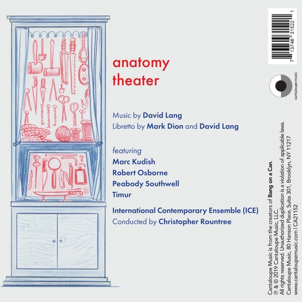 | Beschreibung: | Based on actual 18th-century texts, David Lang's anatomy theater follows the astonishing progression of an English murderess from confession to execution and, ultimately, public dissection before a paying audience of fascinated onlookers. Through the miracle of opera, she sings through it all. Composed by David Lang, with libretto co-written by Lang and scenic designer Mark Dion, anatomy theater a tuneful and grisly theatrical event that conjures a time when "specialists" traveled from town to town in pre-modern Europe, conducting public dissections of the corpses of executed criminals, seeking evidence of moral corruption in the interior of the human body. And as Lang himself warns in the liner notes, it's not for the squeamish - and that includes the performers: "No singers were harmed in the creation of this opera. It seems like an odd statement to make about an entertainment, but it is definitely appropriate to make it, since our piece is so full of terrifying things. Crime and punishment, execution, dissection, the thin line that separates moralistic cruelty from dispassionate scientific inquiry - they're all there.", Runningtime: 00:00:00, Composed By, Libretto By: David Lang, Conductor: Christopher Rountree, Edited By, Engineer [Assistant]: Alessandra Roubini, Libretto By, Artwork By: Mark Dion (2), Orchestra: International Contemporary Ensemble, Recorded By, Engineer, Mixed By, Mastered By, Edited By: Lawson White, Vocals [Ambrose Strang]: Timur (10), Vocals [Baron Peel]: Robert Osborne (2), Vocals [Joshua Crouch]: Marc Kudish, Vocals [Sarah Osborne]: Peabody Southwell, Labelcode CNLP21152.2 (CA21152), Recorded At Avatar Studios, Mixed At Good Child Music Studios, Mastered At Good Child Music Studios, Phonographic Copyright (p) Cantaloupe Music, LLC |