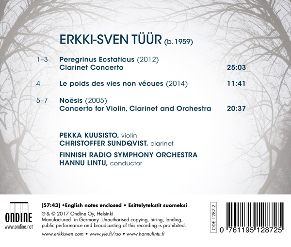 Konzert für Klarinette und Klavier "Pelegrinus Ecstaticus" (2012) 01. Sundqvist, Christoffer "1. (ohne Satzbezeichnung)" 02. Sundqvist, Christoffer "2. (ohne Satzbezeichnung)" 03. Sundqvist, Christoffer "3. (ohne Satzbezeichnung)" 04. Lintu, Hannu "Le poids des vies non v?cues (2014)" Konzert für Violine, Klarinette und Orchester "Noesis" (2005) 05. Sundqvist, Christoffer "1. (ohne Satzbezeichnung)" 06. Sundqvist, Christoffer "2. (ohne Satzbezeichnung)" 07. Sundqvist, Christoffer "3. (ohne Satzbezeichnung)"