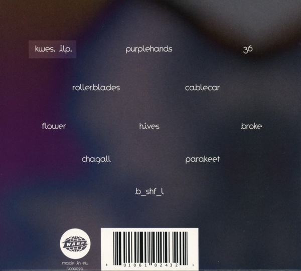 | Beschreibung: | Design: Kate Moross, Done By: Kwes., Mastered By: Kevin Metcalfe, Photography By: Stephanie Sian Smith, Typeface: Sinem Erkas, Labelcode WARPCD243, Published By Warp Music Publishing, Recorded At Studiobokkle., Produced At Studiobokkle., Engineered At Studiobokkle., Mastered At The Soundmasters, Lacquer Cut At The Soundmasters, Phonographic Copyright (p) Warp Records Limited, Copyright (c) Warp Records Limited |