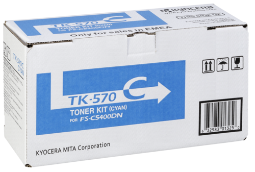 "Toner TK-570C - Cyan - Kapazität: 12.000 Seiten (1T02HGCEU0) [EURO-Version]" von Kyocera Fineceramics Gmbh aus der Kategorie Toner&Tinte besitzt die Abmasse (BxTxH) 306 x 68 x 92 mm. Der Artikel ist zu folgenden Produkten kompatibel: Kyocera FS-C5400DN und kann in folgenden Farben drucken: Cyan.