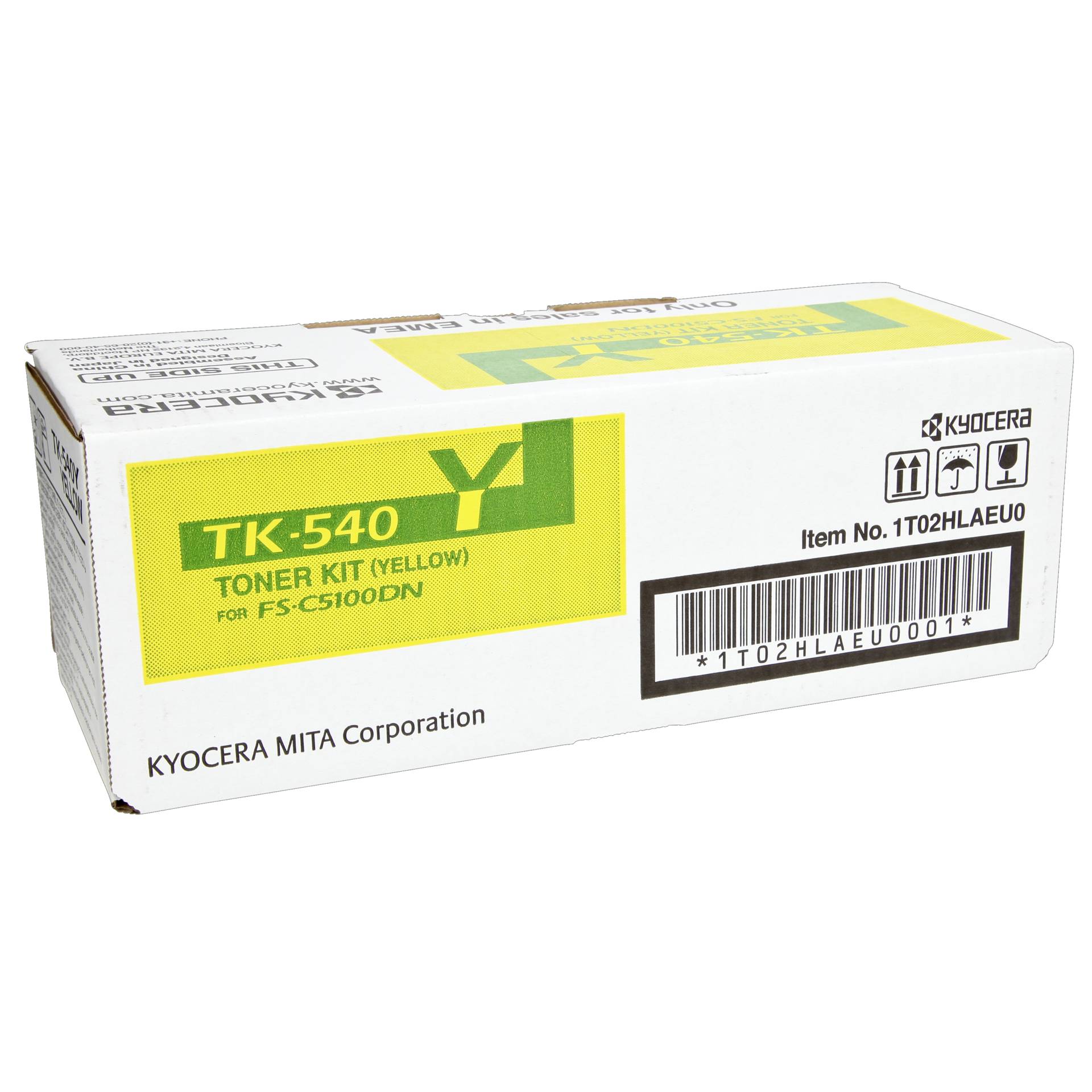 Das Produkt "TON Kyocera TK-540Y yellow [EURO-Version]" von Kyocera ist 307 x 67 x 64 mm (BxTxH) groß. Verwendete Drucktechnologie: Laser. Folgende Produkte besitzen Kompatibilität zu diesem Artikel: FS-C5100DN. Das Produkt unterstützt folgende Druckfarben: Gelb.
