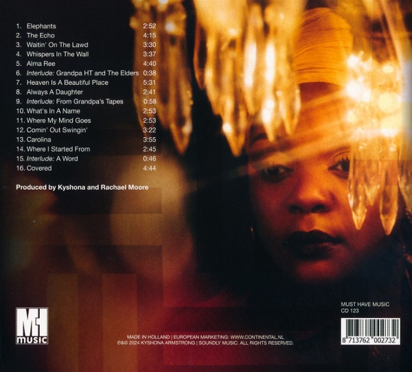 1: Elephants () 2: The Echo () 3: Waitin' In The Lawd () 4: Whispers In The Wall () 5: Alma Rae () 6: Interlude: Grandpa HT and the Elders () 7: Heaven Is A Beautiful Place () 8: Always A Daughter () 9: Interlude: From Grandpa's Tapes () 10: What's In A Name () 11: Where My Mind Goes () 12: Comin' Out Swingin' () 13: Carolina () 14: Where I Started From () 15: Interlude: A Word () 16: Covered ()