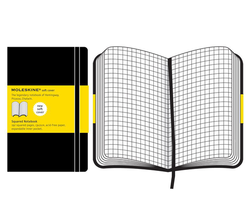 The Moleskine Soft Notebooks have a soft cover and all pages are thread-bound and in acid free paper. With an elastic closure and an expandable inner pocket made of cardboard and cloth, which contains a removable card with the history of Moleskine, they are ideal for students, creative artists and professionals.