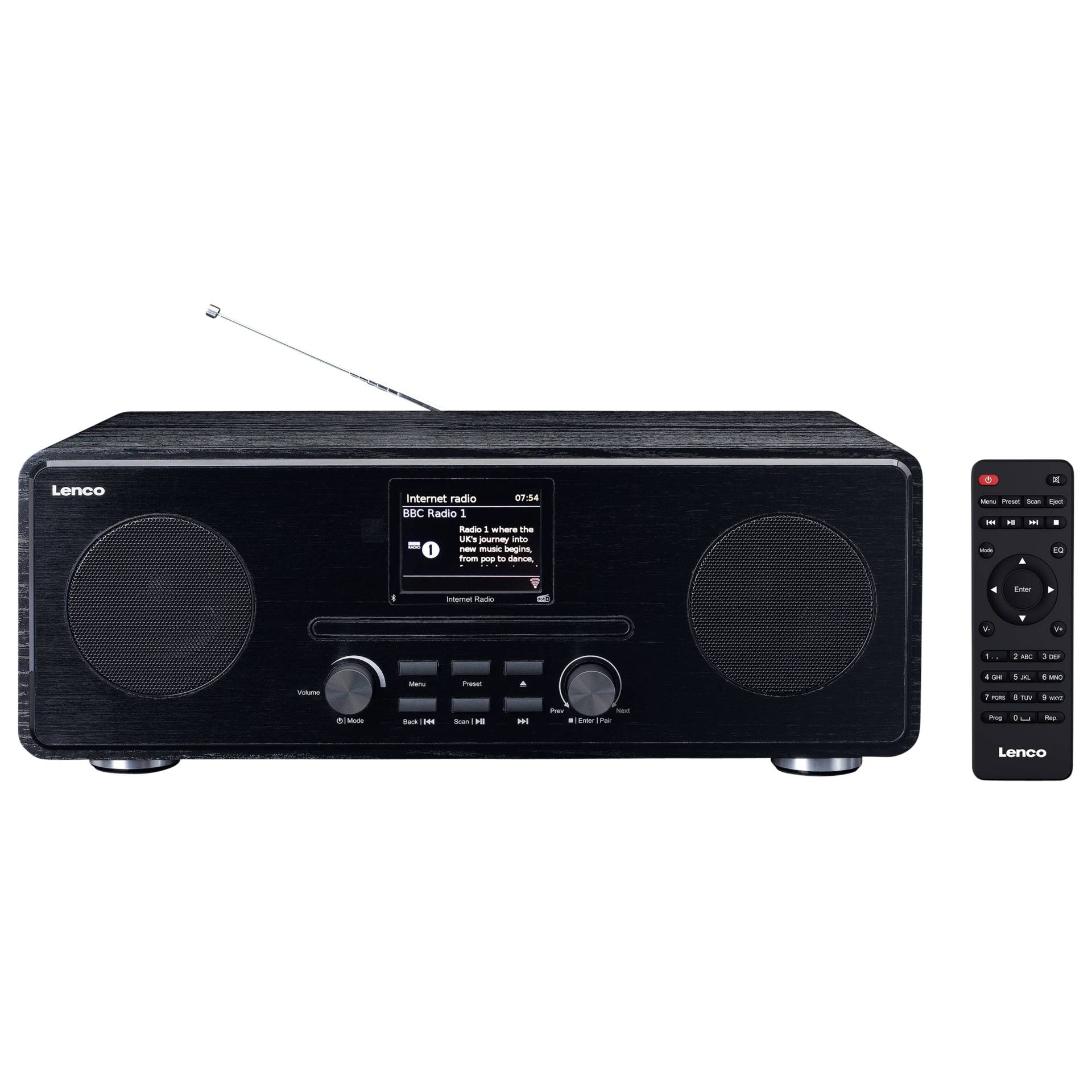 Beschreibung:Hauptmerkmale Radio Radiotyp Internet Unterstützte Bänder DAB+,FM Lautsprecher Eingebaute Lautsprecher Ja Anzahl eingebauter Lautsprecher 2 Bildschirm Eingebaute Anzeige Ja Display-Typ LCD Bildschirmdiagonale 7,11 cm (2.8" ) Netzwerk Bluetooth Ja Bluetooth-Version 5.0 Bluetooth-Bereich 10 m Anschlüsse und Schnittstellen Kopfhörer-Konnektivität Bluetooth Merkmale Playback MP3 Ja Produktfarbe Schwarz Material Holz Färbung Einfarbig Ein-/Ausschalter Ja Leistung Energiequelle AC Stromverbrauch (in Betrieb) 24 W Stromverbrauch (Standby) 1 W Uhr Wecker Ja Sleep-Timer Ja Snooze Funktion Ja Lieferumfang AC-Netzadapter Ja