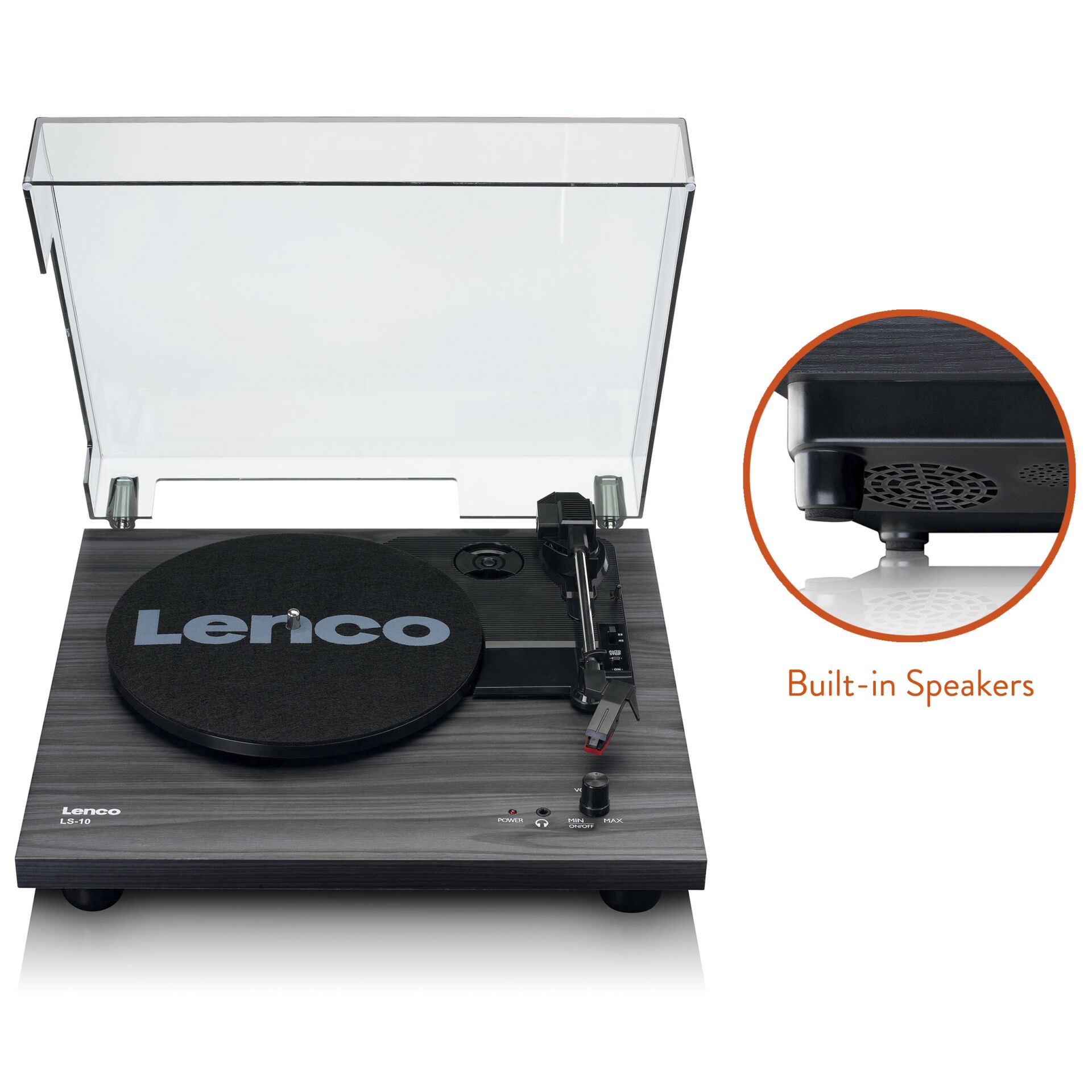 Der Lenco LS-10 Plattenspieler mit eingebauten Lautsprechern in Schwarz ist ein elegantes und benutzerfreundliches Audiogerät für Vinyl-Liebhaber und Einsteiger gleichermaßen. Mit zwei integrierten Stereo-Lautsprechern liefert der LS-10 klaren Klang ganz ohne zusätzliche Geräte. Er unterstützt drei Abspielgeschwindigkeiten (33, 45 und 78 U/min) und ist somit mit allen gängigen Schallplattenformaten kompatibel. Das Riemenantriebssystem sorgt für eine gleichmäßige Rotation bei minimalen Vibrationen ? ideal für beste Tonqualität Ihrer Lieblingsplatten. Dank seines kompakten Designs passt der Plattenspieler perfekt ins Wohnzimmer oder kann leicht zu Freunden transportiert werden. Seit seiner Gründung im Jahr 1946 steht die Schweizer Marke Lenco für zuverlässige und innovative Audioprodukte mit klassischem Design und moderner Technik. Nachhaltigkeit spielt bei Lenco eine große Rolle: Die Verwendung recycelbarer Verpackungen sowie energieeffiziente Produktionsprozesse helfen dabei, den ökologischen Fußabdruck zu verringern ? so leisten Sie als Kunde beim Kauf des LS-10 einen wertvollen Beitrag zum Umweltschutz.