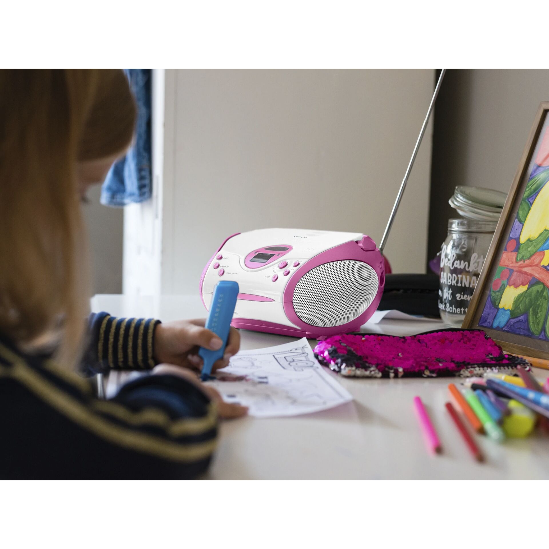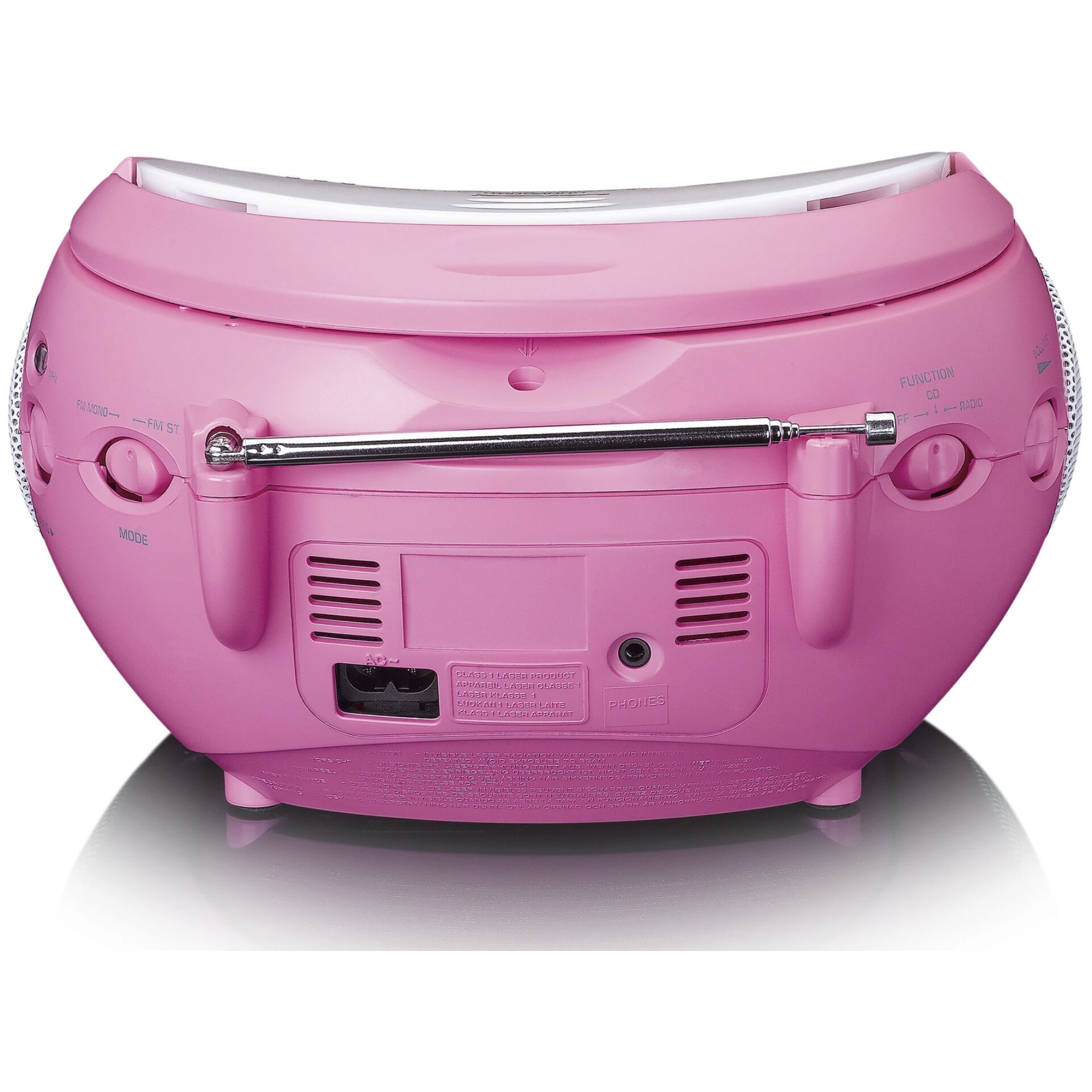 Verstärker | Stereo | Ja | Nennleistung (Watt) | 2 x 2 | Typ(en) | Typ(en) | Radio-CD-Spieler | Radio | Stationsspeicher | 20 | Produkt-Features Radios | Feature 2 | radio | Konnektivität(en) | Bluetooth | Nein | NFC | Nein | W-LAN | Nein | Apple AirPlay | Nein | Kassetten-Laufwerk | Kassetten-Laufwerk | Nein | Autoreverse | Nein | Energie-Versorgung | Energie-Versorgung | Batterie- / Netzbetrieb | Dockingstation | Android-Dock | Nein | Apple-Dock | Nein | Sonstige Dockingstationen | Nein | Display/Anzeige | Farbdisplay | Nein | Ausstattung(en) | Internetradio | Nein | CD Player | Ja | Anschlussarten | AUX-Eingang | Nein | USB Anschluß | Nein | Kopfhörer Anschluss | Ja | Allgemeine Daten | Farbe | pink | Breite in mm | 215 | Höhe in mm | 130 | Tiefe in mm | 240 | Gewicht in g | 1380 |
