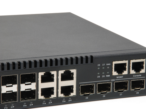 | Allgemeine Daten | | Gewicht in g | 2820 | | Tiefe in mm | 220 | | Höhe in mm | 44 | | Breite in mm | 440 | | Farbe | schwarz | | Montage | | Rackmontage möglich | Ja | | Unterstützte Netzwerkprotokolle | | IEEE 802.3x Flow Control (Full-Duplex Flow Control) | Ja | | IEEE 802.3u 100-BASE-TX, Fast Ethernet | Ja | | IEEE 802.3ad Link Aggregation Control Protocol | Ja | | IEEE 802.3ab 1000-BASE-T, Gigabit Ethernet | Ja | | IEEE 802.3 10-BASE-T, Ethernet | Ja | | IEEE 802.1D MAC Bridges | Ja | | IEEE 802.1w Rapid Spanning Tree Protocol (RSTP) | Ja | | IEEE 802.1s Multiple Spanning Tree Protocol (MSTP) | Ja | | Ausstattung(en) | | Jumbo Frame | 9K (max.) | | Anzahl SFP Ports | 20 + 4 (Shared) + 4 SFP+ | | Typ(en) | | Typ(en) | Switch |
