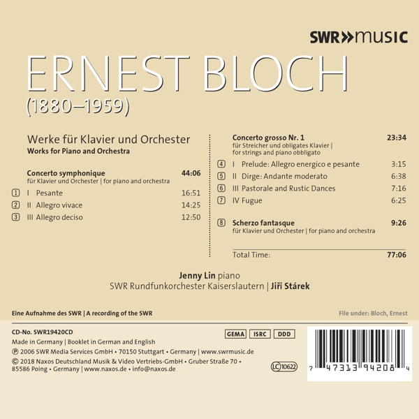 Beschreibung: | This is re-release of a bestselling SWR album. It contains major but rarely played works for piano and orchestra by Ernest Bloch, in the interpretation of Jenny Lin, who is the ideal pianist for these demanding scores. The excellent sound quality makes this album of late Romantic and neo-classicist music a great listen. Jenny Lin studied with Noel Flores at the Hochschule fur Musik in Vienna, with Julian Martin at the Peabody Conservatory in Baltimore, and with Dominique Weber in Geneva. She currently resides in New York City where she serves on the faculty of the 92nd Street y Music School. She is one of the most respected young pianists today, admired for her adventurous programming and charismatic stage presence. She continues to receive accolades worldwide as an orchestral soloist, recitalist, and chamber musician. The New York Times writes: "No one who has heard [her] will need to be told that Ms. Lin has a gift for melodic flow" and "remarkable technical command," the Washington post praises "Lin's confident fingers... spectacular technique... " and Gramophone magazine has hailed her as "an exceptionally sensitive pianist.", Runningtime: 00:00:00, Labelcode HAC19420.2 |