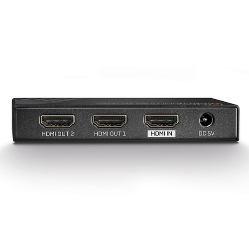 Merkmale | | Maximale Auflösung | 3840 x 2160 Pixel | | Produktfarbe | Schwarz | | Gehäusematerial | Metall | | HDCP-Version | 2.2 | | HDCP | Ja | | Zertifizierung | CE, FCC, RoHS, REACH, California Proposition 65 | Logistikdaten | | Warentarifnummer (HS) | 85176990 | Betriebsbedingungen | | Betriebstemperatur | 0 - 40 °C | | Temperaturbereich bei Lagerung | -20 - 60 °C | | Relative Luftfeuchtigkeit in Betrieb | 20 - 90 % | Verpackungsdaten | | Verpackungsbreite | 146 mm | | Verpackungstiefe | 65 mm | | Verpackungshöhe | 105 mm | | Paketgewicht | 342 g | | Verpackungsart | Box | Energie | | AC Eingangsspannung | 5 V | | Eingangsstrom | 1 A | Gewicht und Abmessungen | | Breite | 100 mm | | Tiefe | 56 mm | | Höhe | 16 mm | | Gewicht | 263 g | Anschlüsse und Schnittstellen | | Video ports Anzahl | 1 | | Video Porttyp | HDMI | | Teilnehmerausgang | 2x HDMI | | HDMI-Version | 2.0 | | Gleichstrom-Anschluss (DC) | Ja | Lieferumfang | | Betriebsanleitung | Ja | | AC-Netzadapter | Ja |