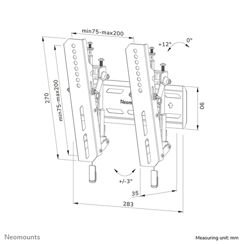 | Beschreibung: | Die Neomounts Select WL35S-850BL12 ist eine neigbare Wandhalterung für Flachbildschirme bis zu 55" mit einem empfohlenen Höchstgewicht von 50kg. Die vielseitige Neigetechnik (12°) ermöglicht es Ihnen, den optimalen Betrachtungswinkel einzustellen. Für eine perfekte Installation ist eine Höhen- und Niveauregulierung möglich. Der WL35S-850BL12 hat eine Tiefe von 3,5 cm und ist für Bildschirme mit VESA-Löchern von 75x75 bis 200x200 mm geeignet. Sie können die Wandhalterung mit der mitgelieferten Anti-DiebstahlKurzinfo: Neomounts by Newstar Select WL35S-850BL12 - Befestigungskit (Wandmontage) - für TV (neigbar) - Schwarz - Bildschirmgröße: 61-139.7 cm (24"-55") Gruppe AV-Möbel Hersteller Neomounts by Newstar Hersteller Art. Nr. WL35S-850BL12 EAN/UPC 8717371448783 Produktbeschreibung: Neomounts by Newstar Select WL35S-850BL12 - Befestigungskit - für TV (neigbar) Produkttyp Befestigungskit (neigbar) Montagekomponenten Wandmontage Abmessungen (Breite x Tiefe x Höhe) 28.3 cm x 3.5 cm x 27 cm Neigung 12° Anpassungen Neigung Empfohlene Verwendung TV Empfohlene Display-Größe 61-139.7 cm (24"-55") VESA-Halterung 100 x 100 mm, 75 x 75 mm, 200 x 200 mm, 200 x 100 mm, 100 x 75 mm, 100 x 200 mm, 100 x 150 mm, 75 x 100 mm, 75 x 200 mm, 120 x 120 mm Max. Ladegewicht 50 kg Farbe Schwarz Packungsinhalt Befestigungsteile Ausführliche Details Allgemein Breite 28.3 cm Tiefe 3.5 cm Höhe 27 cm Farbe Schwarz Packungsinhalt Befestigungsteile Möbel für audiovisuelle Geräte Typ Befestigungskit Montagekomponenten Wandmontage |  | | Herstellernummer: |