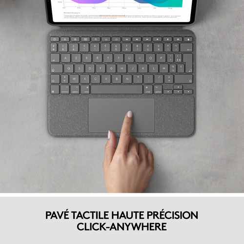 Beschreibung:Logitech Combo Touch - Tastatur und Foliohülle - mit Trackpad - hintergrundbeleuchtet - Apple Smart connector - QWERTZ - Schweiz - Oxford Gray - für Apple 27,90cm (11") iPad Pro (1. Generation, 2. Generation, 3. Generation) Gruppe Tastaturen Hersteller Logitech Hersteller Art. Nr. 920-010143 Modell Combo Touch EAN/UPC 5099206095236 Produktbeschreibung: Logitech Combo Touch - Tastatur und Foliohülle - mit Trackpad - QWERTZ - Schweiz - Oxford Gray Gerätetyp Tastatur und Foliohülle Hintergrundbeleuchtet 16-stufig Schnittstelle Apple Smart connector Eingabegerät Tastatur Anschlusstechnik Kabelgebunden Eingebaute Geräte Trackpad Lokalisierung und Layout QWERTZ Schweiz Tastaturkurzbefehl-Funktion Suchen, Stummtaste, Helligkeit, Bildschirmsperre, Wiedergabe/Pause, vorheriger Titel, nächster Titel, Home Screen, Onscreen-Tastatur, Steuerung der Hintergrundbeleuchtung, Lautstärke -, Lautstärke + Schutz Stoßschutz Farbe Oxford Gray Gehäusematerial Gewebter Stoff Abmessungen (Breite x Tiefe