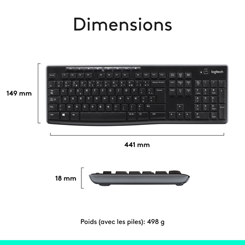 "Wireless Combo MK270 - Tastatur-und-Maus-Set - drahtlos - 2,4 GHz - Französ..." von Logitech aus der Kategorie Tastaturen hat als Design-Form Ambidextrös, ist Kompatibel zu Windows 10,Windows 10 Education,Windows 10 Education x64,Windows 10 Enterprise,Windows 10 Enterprise x64,Windows 10 Home,Windows 10 Home x64,Windows 10 Pro,Windows 10 Pro x64,Windows 7 Enterprise,Windows 7 Enterprise x64,Windows 7 Home Basic,Windows 7 Home Basic x64,Windows 7 Home Premium,Windows 7 Home Premium x64,Windows 7 Professional,Windows 7 Professional x64,Windows 7 Starter,Windows 7 Starter x64,Windows 7 Ultimate,Windows 7 Ultimate x64,Windows 8,Windows 8 Enterprise,Windows 8 Enterprise x64,Windows, hat die Farbe Schwarz und hat ein Gesamtgewicht von 744 g. Der Artikel besitzt die Zertifizierungen: CE, FCC, CB.