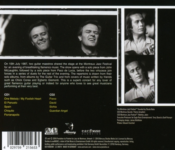 Die Titelauswahl spiegelt die unterschiedlichen musikalischen Welten der beiden Musiker wider und führt von flamenco-geprägten Stücken mit treibendem Compás bis zu eher jazzorientierten Kompositionen mit großer harmonischer Tiefe und viel Raum für improvisatorische Ausflüge. Leise, beinahe meditative Momente wechseln sich mit atemberaubend energiegeladenen Passagen ab, in denen technische Brillanz und künstlerischer Ausdruck untrennbar ineinandergreifen. Die transparente Live-Aufnahme lässt jede Nuance der Nylonsaiten, jede dynamische Abstufung und die Reaktionen des Montreux-Publikums deutlich hervortreten, sodass man sich unmittelbar in den Konzertsaal versetzt fühlt. Diese CD ist damit nicht bloß ein Konzertmitschnitt, sondern ein zeitloses Dokument einer musikalischen Begegnung zweier verwandter Seelen.