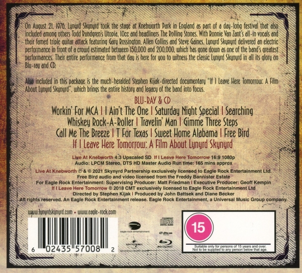 Disc 01 01. "Workin' For MCA (Live At Knebworth / 1976)" 02. "I Ain't The One (Live At Knebworth / 1976)" 03. "Saturday Night Special (Live At Knebworth / 1976)" 04. "Searching (Live At Knebworth / 1976)" 05. "Whiskey Rock-A Roller (Live At Knebworth / 1976)" 06. "Travelin' Man (Live At Knebworth / 1976)" 07. "Gimme Three Steps (Live At Knebworth / 1976)" 08. "Call Me The Breeze (Live At Knebworth / 1976)" 09. "T For Texas (Live At Knebworth / 1976)" 10. "Sweet Home Alabama (Live At Knebworth / 1976)" 11. "Free Bird (Live At Knebworth / 1976)" 12. "Menu / / Live At Knebworth '76 (Live At Knebworth / 1976)" 13. "If I Leave Here Tomorrow"