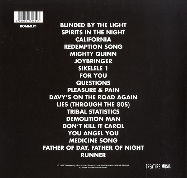 Disc 01 01. "Blinded by the light" 02. "Spirits in the night" 03. "California" 04. "Redemption song" 05. "Mighty Quinn" 06. "Joybringer" 07. "Sikelele 1" 08. "For you" 09. "Questions" 10. "Pleasure and pain"