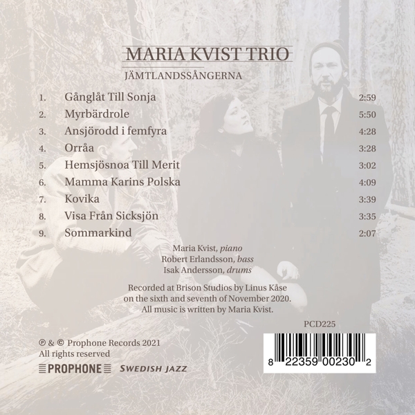 Beschreibung:MARIA Kvist shows with her trio on this record how she, based on her own strong experiences in her landscape Jämtland, wants to design her music-compositions, arrangements and improvisations. Here is a very interesting break, or rather interplay, between her roots and her musical means of expression. Maria is a driven and resourceful pianist with great breadth in the address. As a composer, she connects with the Swedish greats but is careful not to plagiarize - it is not part of the artistic mission. e task is instead to develop, to reshape and convey something of her own - to attract both herself, her fellow musicians and us - the listeners - to strong emotions and exciting discoveries., Runningtime: 00:00:00, Labelcode PROP225.2