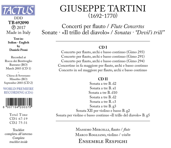 | Beschreibung: | Bassoon: Roberto Giaccaglia, Cello: Federico Ferri, Composed By: Giuseppe Tartini, Ensemble: Ensemble Respighi, Flute: Massimo Mercelli, Harpsichord: Daniele Proni, Lute [Archlute]: Stefano Rocco, Viola: Andrea Maini, Violin: Alessandra Talamo, Violin: Grazia Serradimigni, Violin: Marco Rogliano, Violin: Roberto Noferini, Labelcode TCS692090.2 (TB 692090), Phonographic Copyright (p) Tactus, Recorded At Rocca Dei Bentivoglio, Bazzano, Recorded At Chiesa di Soverzano, Minerbio |  | Anzahl der Titel: |