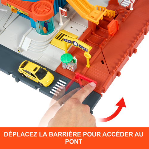 Beschreibung:Auf zu esannenden Abenteuern an Land, in der Luft und auf See mit dem Matchbox Action Drivers Tranesort-Center. Dieses legendäre esielset umfasst ein fünfstöckiges Parkhaus, ein Schiffsdock und einen Hubschrauberlandeplatz und enthält ein Taxi, ein Boot und einen Helikopter im Maßstab 1:64 für realistischen esielesaß. In der Ladezone für Fahrgäste die Drehtür aktivieren und die ankommenden Fahrgäste begrüßen. Der Essensverkäufer bietet leckere Snacks an. Der durch Kinder aktivierbare Aufzug führt in das Parkhaus, das Platz für 12 Die-Cast-Fahrzeuge bietet. Wenn der Hubschrauber auf dem Hubschrauberlandeplatz landet, wirbelt er die Fahrzeuge aus der Garage und in den Straßenverkehr hinaus. Am Hafen lässt sich die Brücke ausschwenken, um ein Pier zu bilden, und erweitert so die esielmöglichkeiten. Abweichungen in Farbe und Gestaltung vorbehalten.