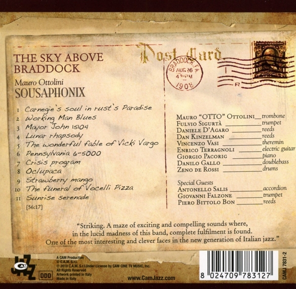 | Beschreibung: | Accordion, Piano, Guest: Antonello Salis, Alto Saxophone, Baritone Saxophone, Bass Clarinet, Guest: Piero Bittolo Bon, Clarinet, Tenor Saxophone: Daniele D'Agaro, Double Bass, Electric Bass, Bass [Lute]: Danilo Gallo, Electric Guitar, Banjo: Enrico Terragnoli, Piano, Electronics, Electric Piano [Fender Rhodes]: Giorgio Pacorig, Producer: Ermanno Basso, Tenor Saxophone, Bass Clarinet, Clarinet: Dan Kinzelman, Theremin, Electronics, Vocals, Toy: Vincenzo Vasi, Trombone, Sousaphone, Electronics, Trumpet [Slide], Trumpet [Bass]: Mauro Ottolini, Trumpet, Electronics: Fulvio Sigurta, Trumpet, Guest: Giovanni Falzone, Labelcode IMT949514.2 (CAMJ 7831-2), Recorded At Artesuono Recording Studio |